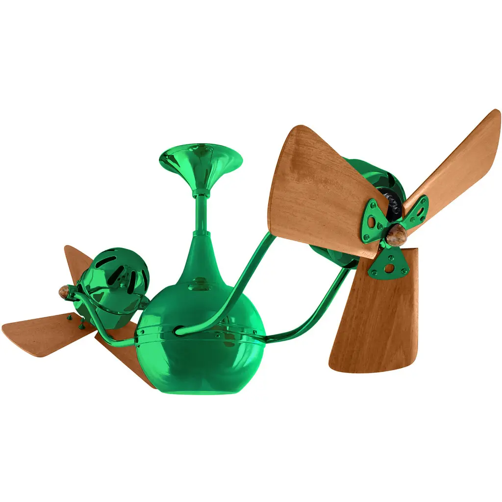 The Ar Ruthiane's unique hourglass support arms grasp bullet-shaped motor housings which rotate about its teardrop center. The fan heads can be infinitely positioned in 180-degree arcs for optimum air movement the greater the angles of the motors to the horizontal support rods (up or down), the faster the axial rotation. A slow, controlled axial rotation is achieved by both fan head position and fan blade speed.