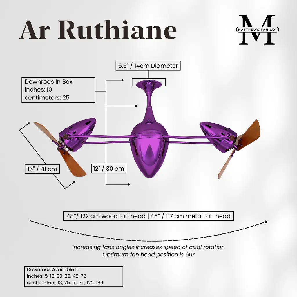 Matthews-Gerbar Ar Ruthiane 16 Inch Ametista With Solid Mahogany Wood Blades Rotational Ceiling Fan