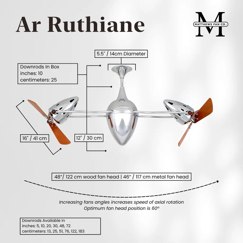 Matthews-Gerbar Ar Ruthiane 16 Inch Polished Chrome With Solid Mahogany Wood Blades Rotational Ceiling Fan, Matthews-Gerbar