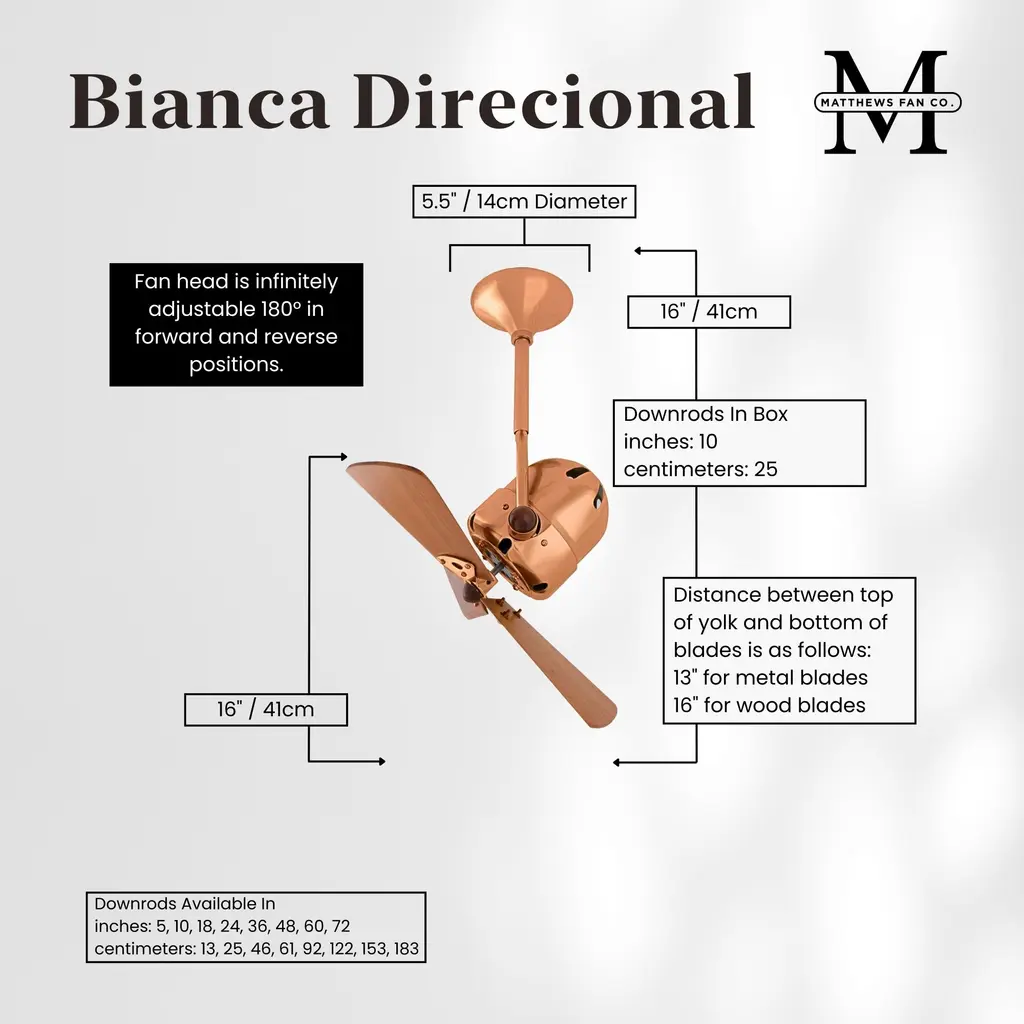 Matthews-Gerbar Bianca Direcional 16 Inch Brushed Copper With Solid Mahogany Wood Blades Directional Ceiling Fan, Matthews-Gerbar