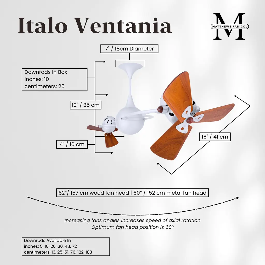 Matthews-Gerbar Italo Ventania 16 Inch Gloss White With Solid Mahogany Wood Blades Rotational Ceiling Fan, Matthews-Gerbar