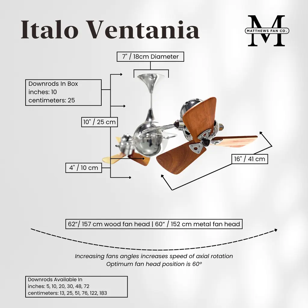 Matthews-Gerbar Italo Ventania 16 Inch Polished Chrome With Solid Mahogany Wood Blades Rotational Ceiling Fan, Matthews-Gerbar