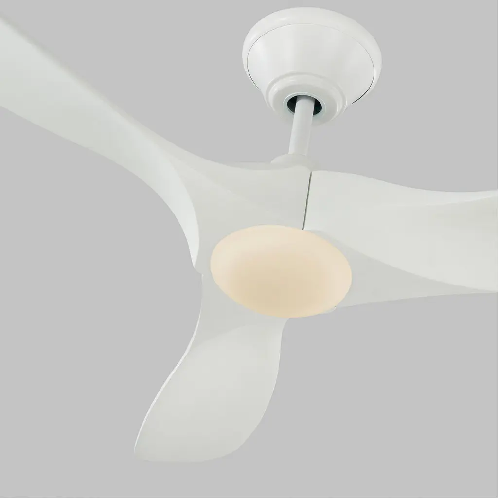 The Maverick 52 LED in Matte White features an 85.0 X 28.0 6-speed motor with a Thirteen-degree blade pitch. The famous Maverick ceiling fan is now available with an integrated LED light. This advanced LED technology is carefully designed and selected to have the highest quality LED chipsets for superior performance and reliability. With a sleek modern silhouette, a DC motor, and super energy efficiency, the Maverick LED ceiling fan features softly rounded blades and elegantly simple housing. Maverick LED is available in 52, 60, and 70-inch blade sweep and a 3-blade design that delivers a distinct profile and incredible airflow for living rooms, great rooms, or outdoor covered areas. It includes a hand-held remote with six speeds and reverses. All versions feature beautiful hand-carved balsa wood blades. ENERGY STAR qualified. Maverick fans are damp-rated. Aß