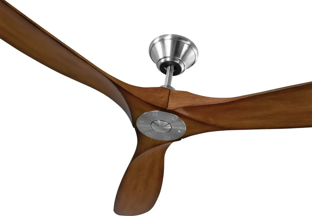Featuring three hand-carved balsa wood blades with a warm finish and contrasting steel hardware, this EnergyStar-rated ceiling fan is also damp-rated for use in covered outdoor spaces and operates with an energy-efficient, six-speed DC motor. We especially love how the distinctive, swooping design of the blades promotes optimal airflow while staying remarkably quiet. Hand-held remote control included.