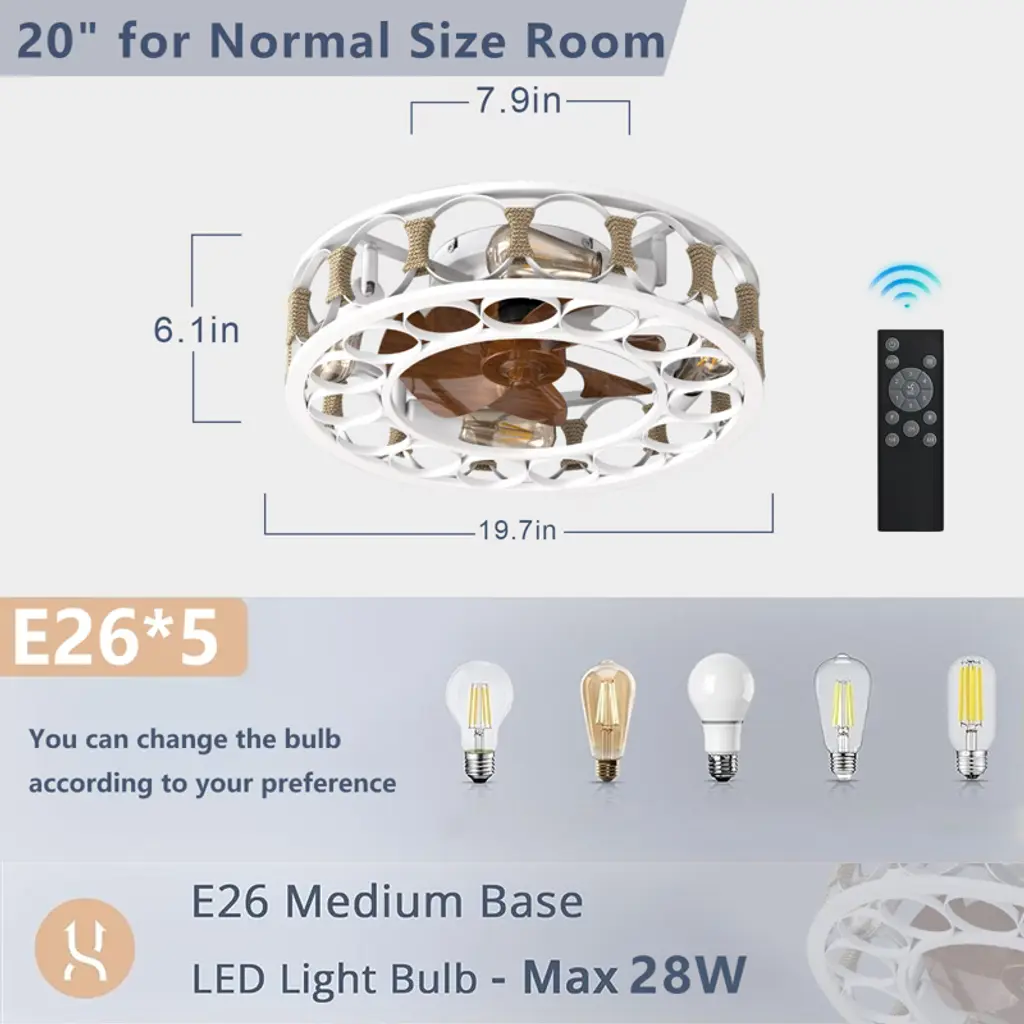 Mayeerty Ceiling Fan Caged With Lights Remote Control Semi Embedded Modern 6 Speeds Reversible Blades