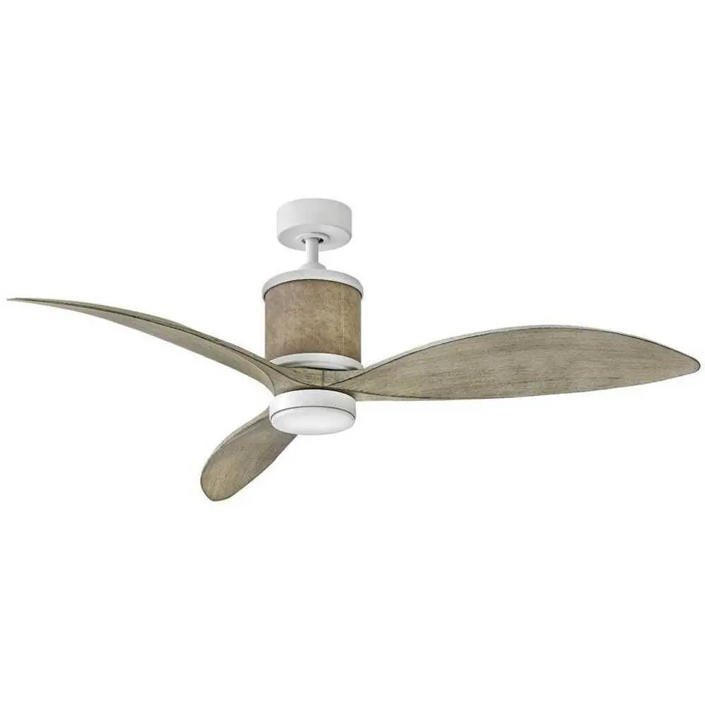 Bring breeze and bright light to inside spaces with the bold, layered lines of the Merrick LED Ceiling Fan from Hinkley Lighting. A luxurious, carefully-considered design, it starts with a smooth metal disc canopy and transmits a short downrod to a cylindrical body banded by smooth metal accents, which seats three cleverly-curved blades above a slim LED lamp set inside an opal diffuser. The fixture is damp-listed and fabulously functional, arriving with Wi-Fi compatibility and an included HIRO remote that whirls the blades through six reversible speeds. Comes with Hinkley's HIRO smart fan control system allowing you to control your fan using a smartphone app or voice assistant like Amazon Alexa or Google Assistant.