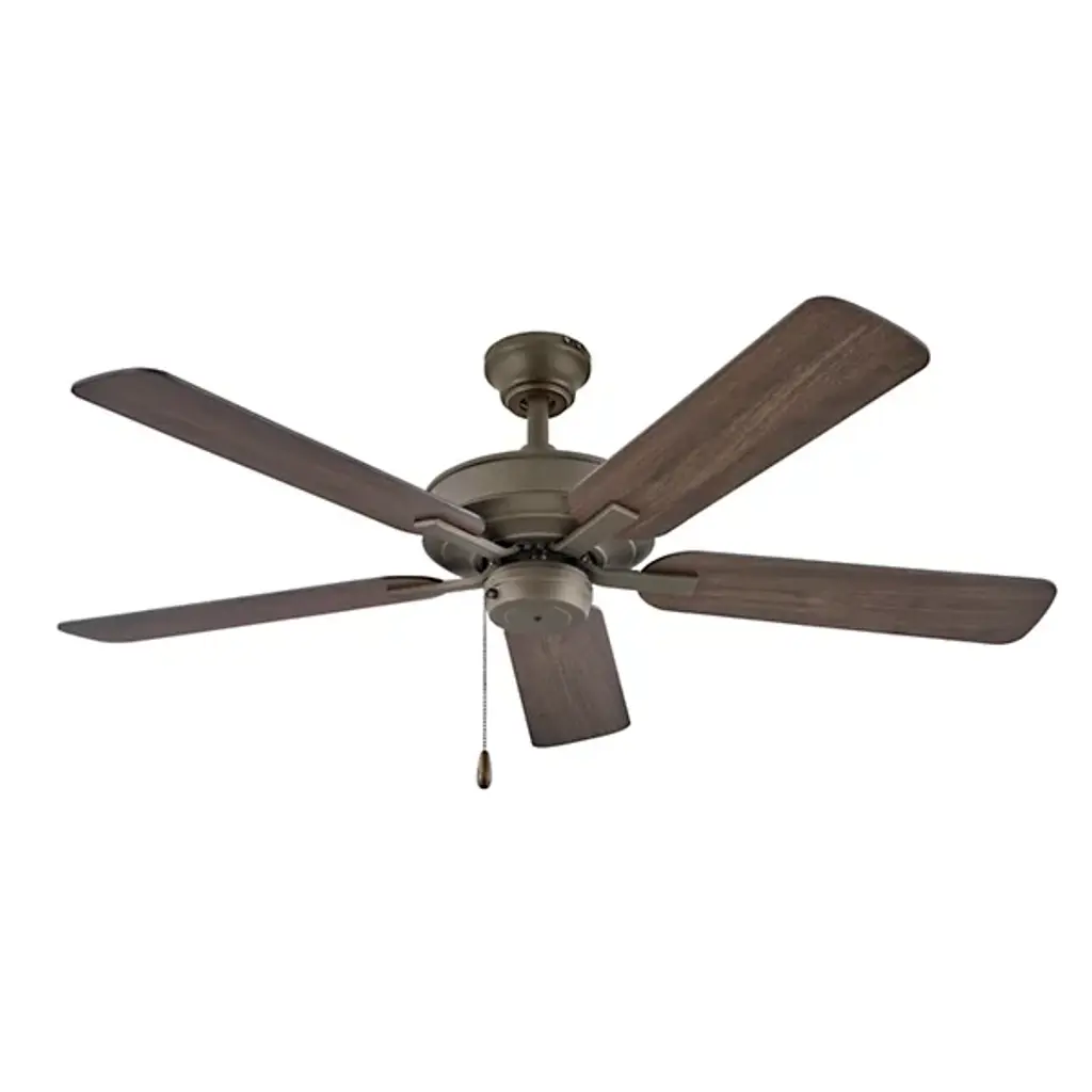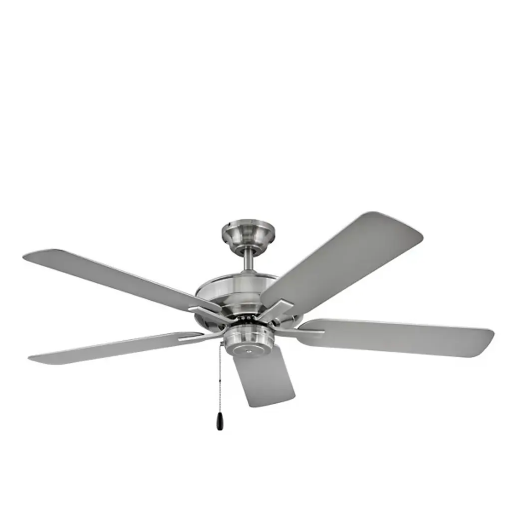 Enjoy a bright sunny day in your patio underneath the relaxing surge of air created by the Metro 52-Inch Wet-Rated Ceiling Fan from Hinkley. The solid construction is designed to weather the elements. The fan’s classic aesthetic makes it a great addition to a range of home styles. It draws the eye with clean lines. The five blades angle slightly to cut across the air in a forward and reverse position. Controlled with an elegant pull chain, the blades offer three distinct speeds. Either setting generates an uplifting atmosphere that helps extend your time outside.