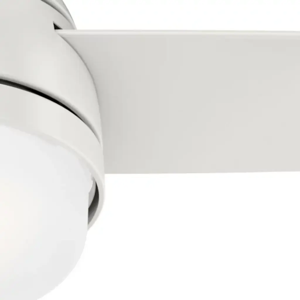 Cool and contemporary. The Midtown LED Ceiling Fan by Hunter Fans features three Patent Pending Performance Blades that are cupped to move a maximum amount of air. With whisper-quiet operation, the simple uniform design of this fan has a softly rounded body that is completed with a smooth, cased white glass shade that diffuses an integrated LED light source. An included remote operates three speeds and a reversible option to create a comfortable environment within your home.