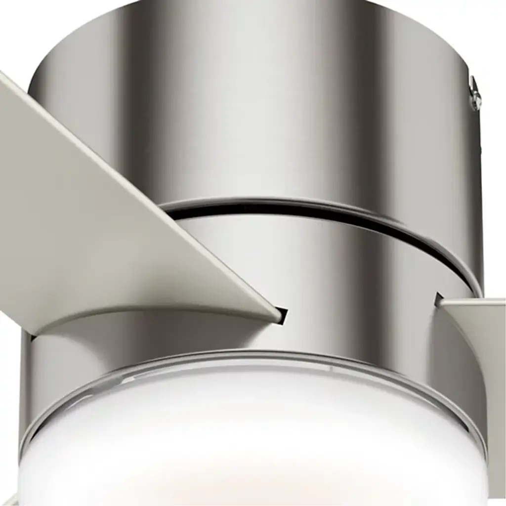 Stay cool and stay comfortable with the powerful and compact Minimus LED Ceiling Fan from Hunter Fans. Tight rooms with low ceilings are the perfect candidate for this low-profile design. The clean, uninterrupted contours of its silhouette offer a handsome modern look crafted with versatility in mind. Its cool reversible blades are powered by a three-speed WhisperWind® motor, that provides sweeping air with hush tones. Integrated LEDs complete the piece with inviting illumination; their dimness and the fan's speed are adjustable with an included remote.