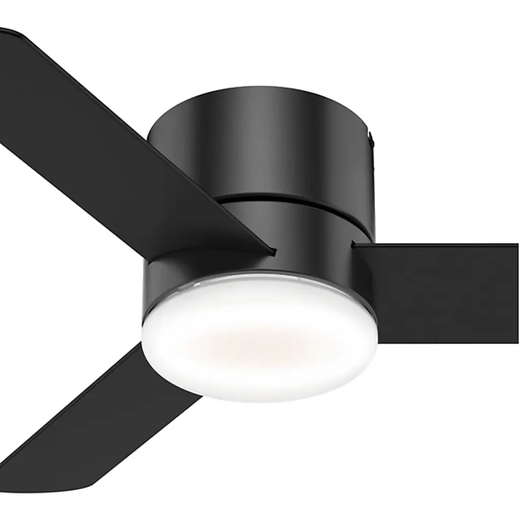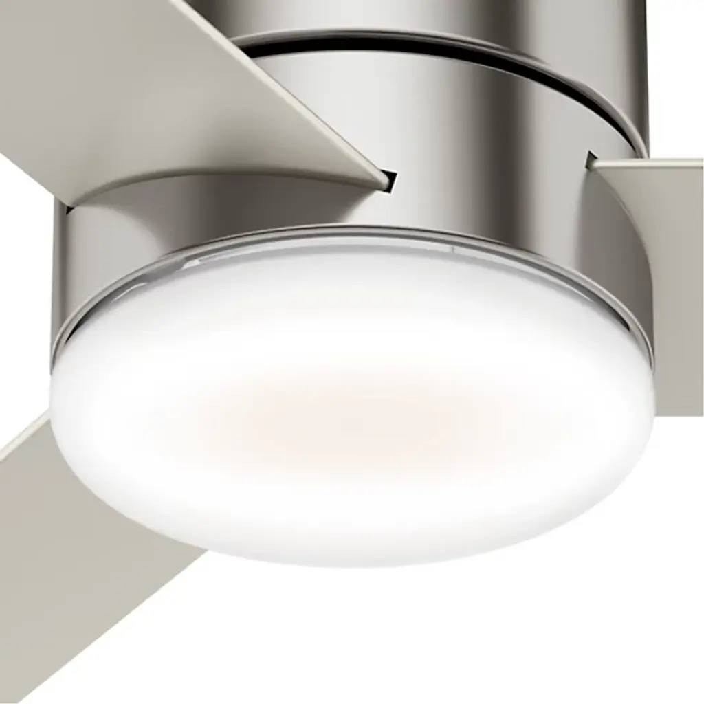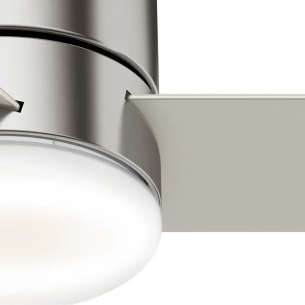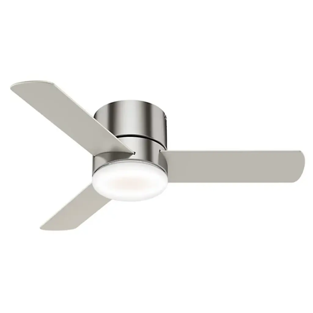 Stay cool and stay comfortable with the powerful and compact Minimus LED Ceiling Fan from Hunter Fans. Tight rooms with low ceilings are the perfect candidate for this low-profile design. The clean, uninterrupted contours of its silhouette offer a handsome modern look crafted with versatility in mind. Its cool reversible blades are powered by a three-speed WhisperWind® motor, that provides sweeping air with hush tones. Integrated LEDs complete the piece with inviting illumination; their dimness and the fan's speed are adjustable with an included remote.