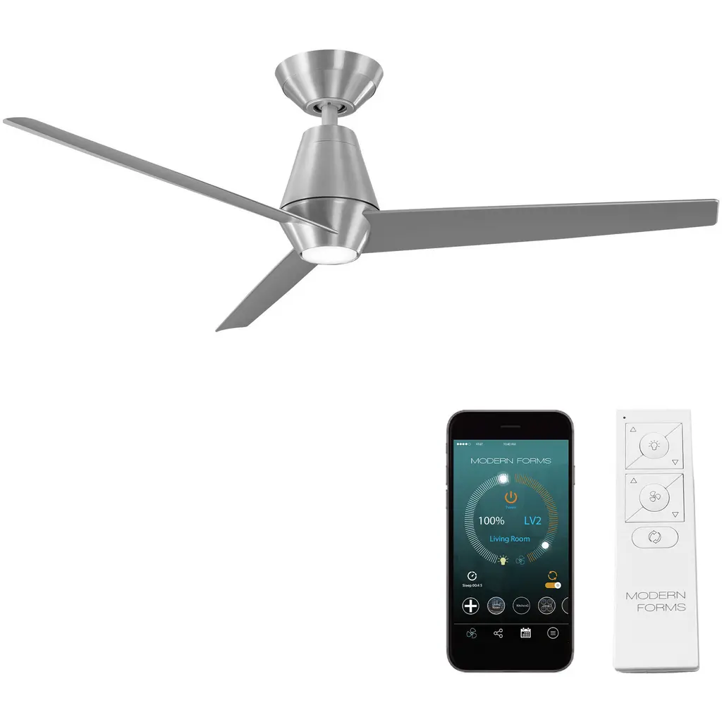 A simple, yet expressive modern piece, the Mocha LED Smart Ceiling Fan from WAC Lighting presents a sleek silhouette made of a set of three precisely honed and shaped blades. Evenly spaced and extending from the central body, the blades present a visually interesting and pleasing sight, one further enhanced by the integrated, energy-efficient LED that rests at the base. Adaptable for sloped ceilings and rated for wet locations, the smooth and full glow of the LED can spread throughout any room in the home.