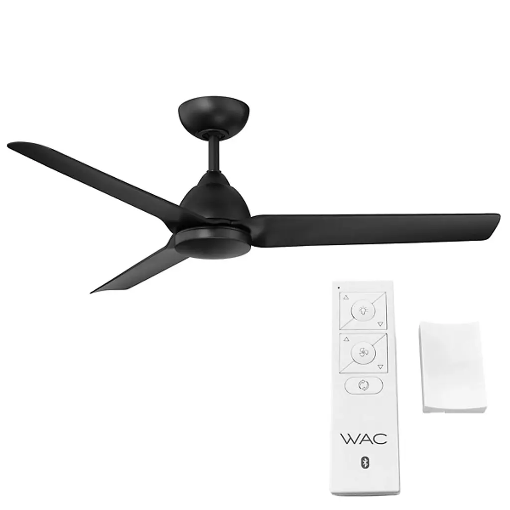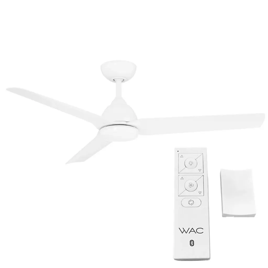 A sleek and clean presentation of modern design. The Mocha Smart Ceiling Fan from WAC Lighting features three precise blades, each equally spaced apart and extending from a central, shining metal body. With a smooth silhouette and graceful curves as it descends from the ceiling, this piece gives an impressive, futuristic appeal, one that works well with a range of home decors. Able to be mounted to sloped ceilings and rated for wet locations, this fan is a versatile fan that impresses upon and elevates any room in the home.