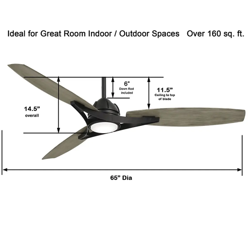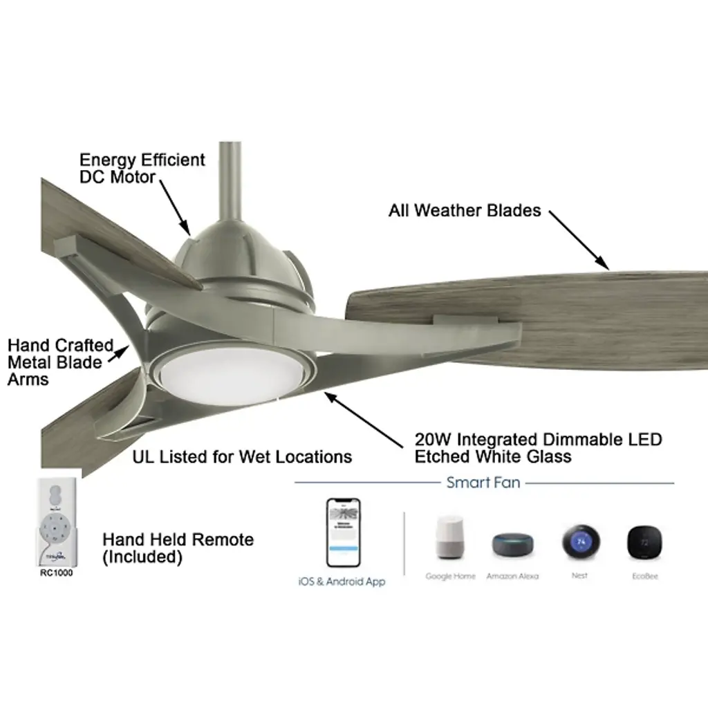 The Molino LED Smart Ceiling Fan by Minka Aire Fans elevates any residential or commercial space with its timeless and traditional style. Its three ABS blades add a decorative warmth with a wood grain effect and effortlessly circulate air throughout any indoor or outdoor environment with a 65" blade span. ETL Listed for wet locations the Molino fan can be enjoyed rain or shine, day and night. Connectable to any smart hand-held or home device with the Bond App, controlling the Molino can be done with WiFi connectivity.