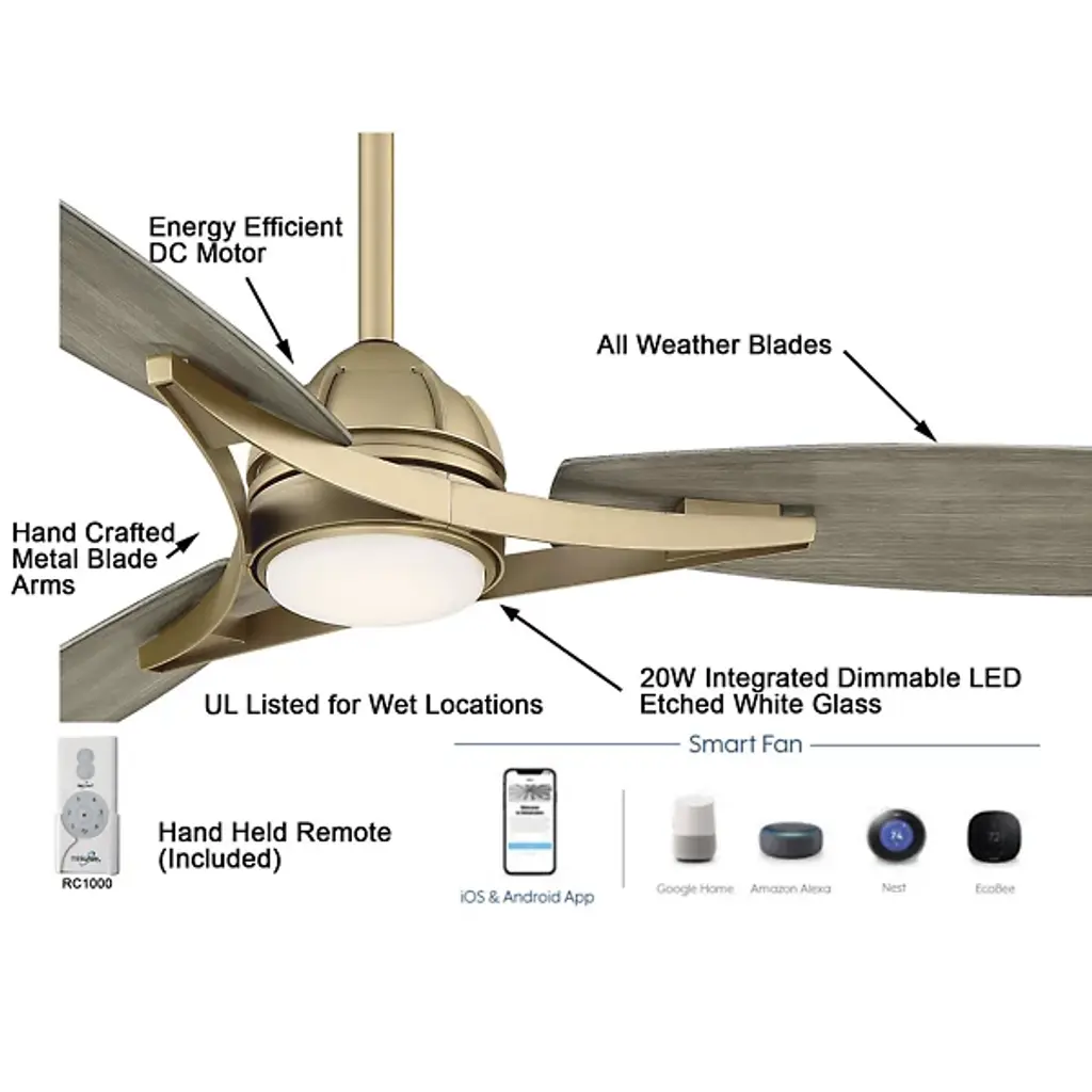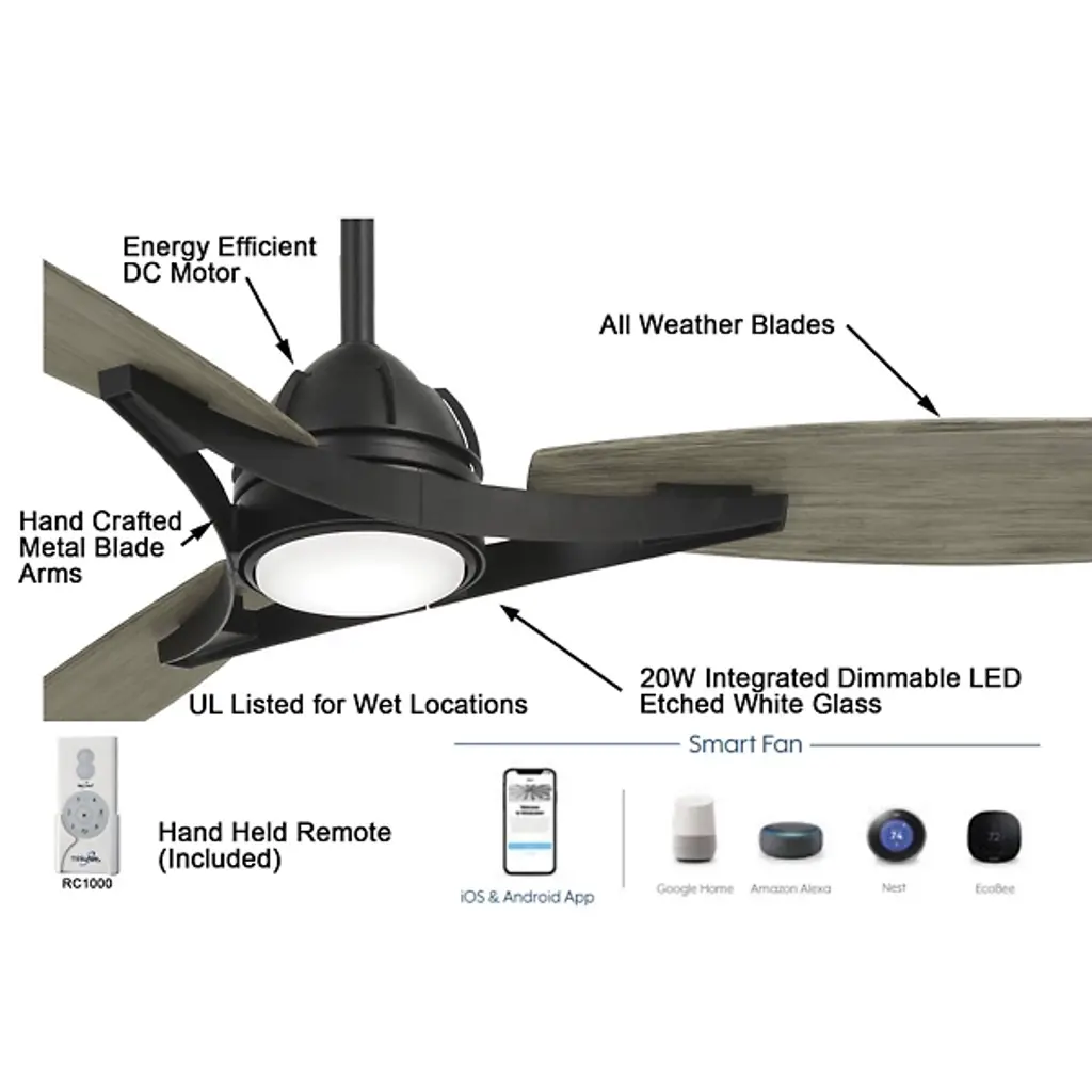 The Molino LED Smart Ceiling Fan by Minka Aire Fans elevates any residential or commercial space with its timeless and traditional style. Its three ABS blades add a decorative warmth with a wood grain effect and effortlessly circulate air throughout any indoor or outdoor environment with a 65" blade span. ETL Listed for wet locations the Molino fan can be enjoyed rain or shine, day and night. Connectable to any smart hand-held or home device with the Bond App, controlling the Molino can be done with WiFi connectivity.