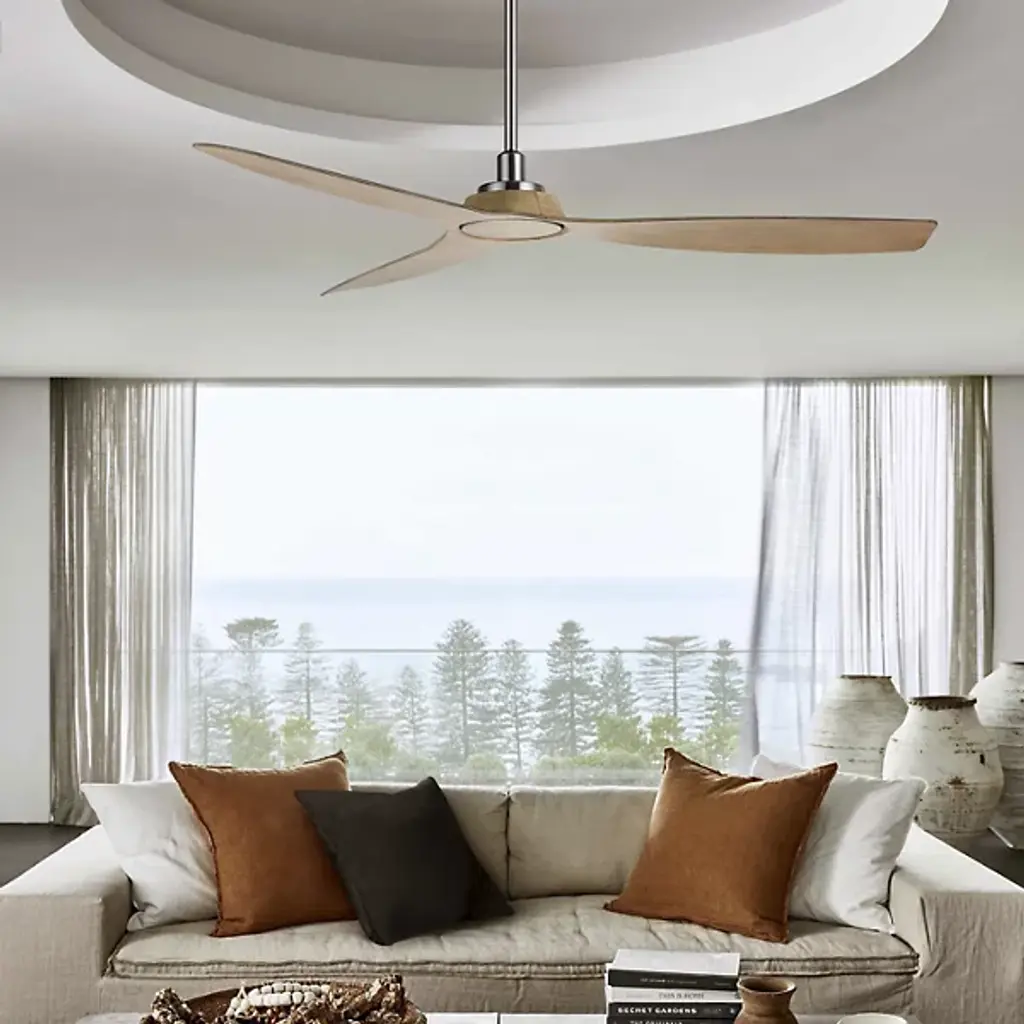 The Moto Lucci Air Ceiling Fan by Beacon Lighting presents a refined, simple silhouette that offers efficient performance. A Lucci Air design, it features three gracefully curved ABS blades connected to a sleek steel motor housing, a whisper-quiet DC motor at its core. The efficient engine uses up to 40% less energy than traditional AC ceiling fans, making it an eco-friendly choice for year-round comfort. Six speed settings with reversible functionality for both summer and winter are controlled by a handheld remote, offering smooth temperature alteration.