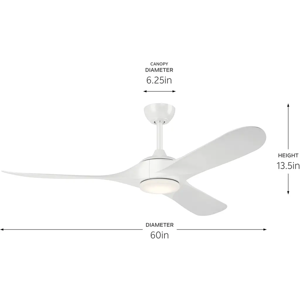 With its soft curves and sculptural form, the Mylo 60" Weather+ ceiling fan offers easy room coordination in an array of modern style environments. As a Weather+ model, it's designed to withstand wet-rated weather conditions plus combat the effects of certain environmental factors such as saltwater spray and the impact from UV rays. Plus, its large diameter size helps circulate a considerable amount of air to create a desirable cooling effect in larger spaces. As versatile as it is functional, Mylo's included light cap provides the option to utilize the fan with or without the light source while its three contoured blades enhance its overall aesthetics.