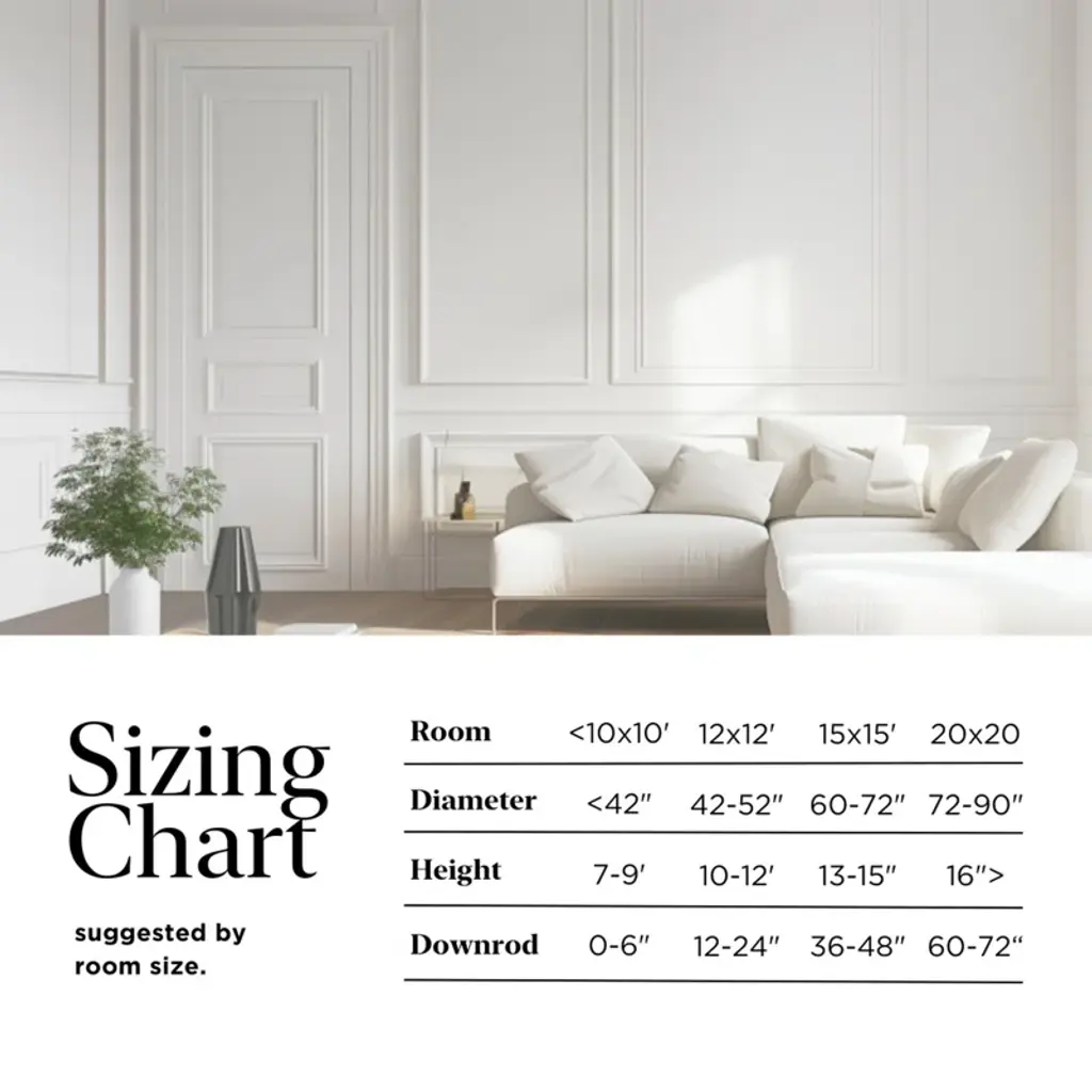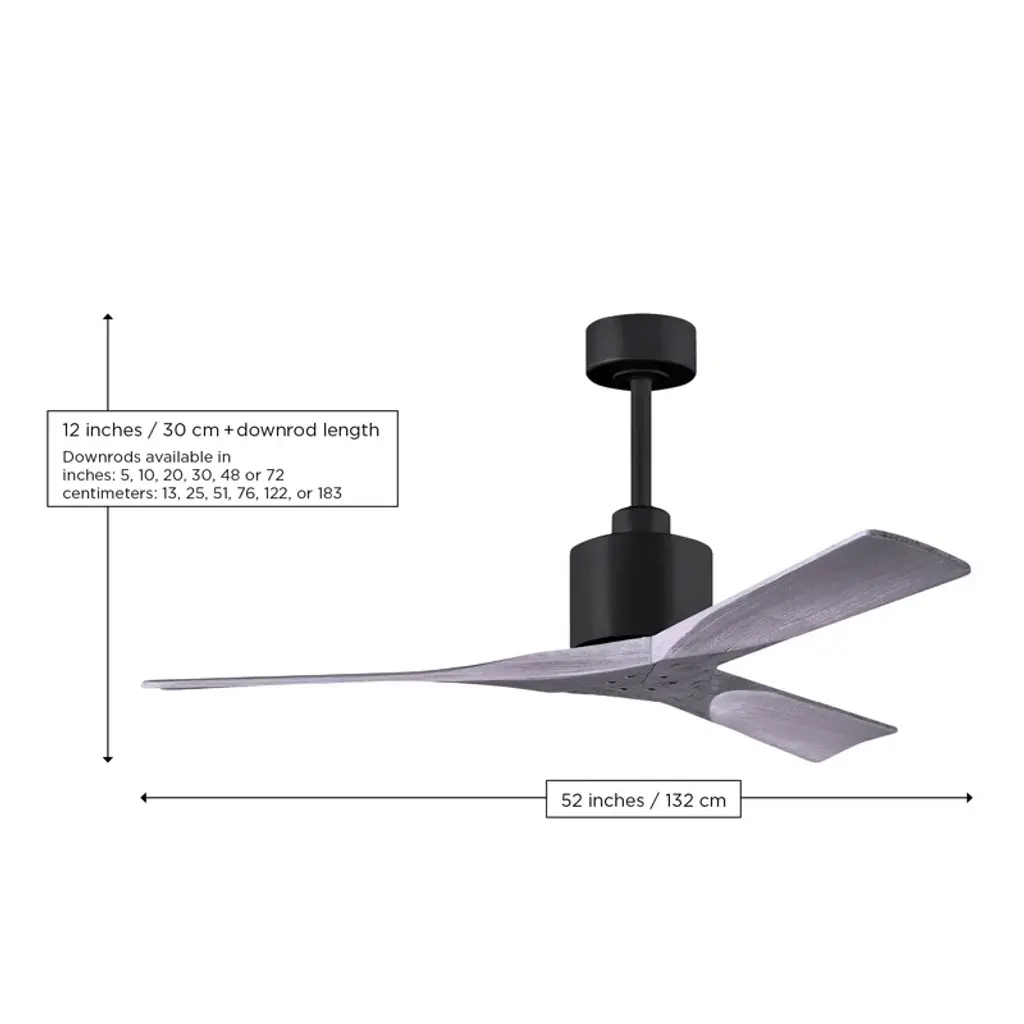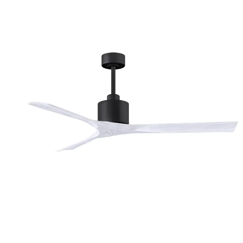 52" minimal damp location ceiling fan designed by Chicago architect Stephen Katz. 6 speed DC motor operated by hand-held remote control and wireless wall control. Solid wood blades in Matte Black