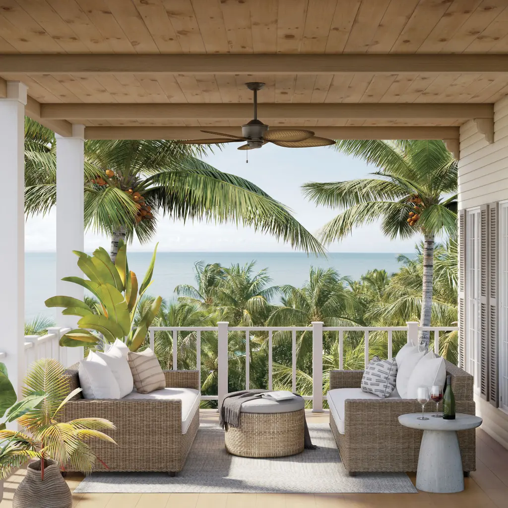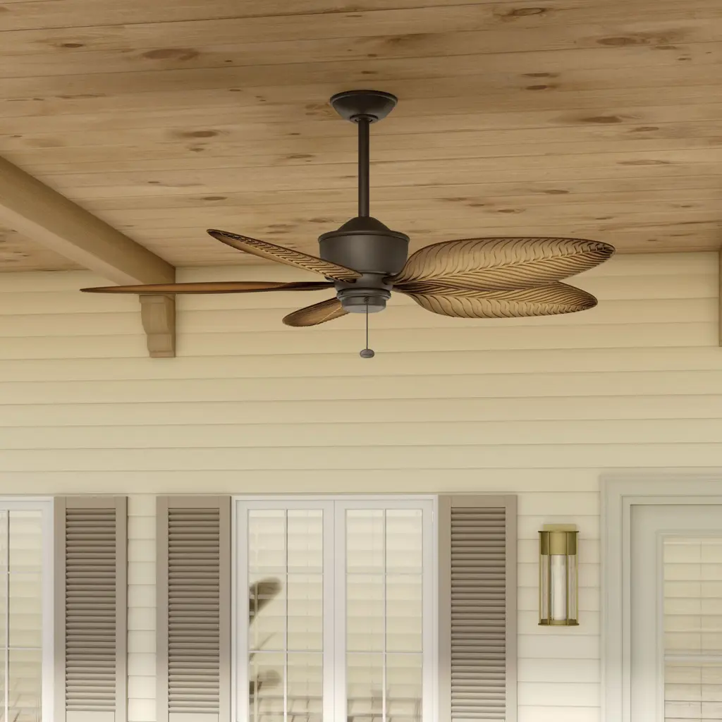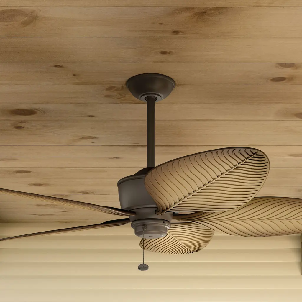Transform any space into its own paradise with the palm-leaf inspired design of the Nani 5 Blade Weather+ Outdoor Ceiling Fan. This beautiful design makes a great addition to coastal spaces and pairs well with tropical decor. Its broad blade sweep makes it ideal for medium-sized applications while its Weather+ rating allows it to withstand wet-rated weather conditions, plus combat the effect of the environmental elements such as saltwater spray and impact from UV rays.
