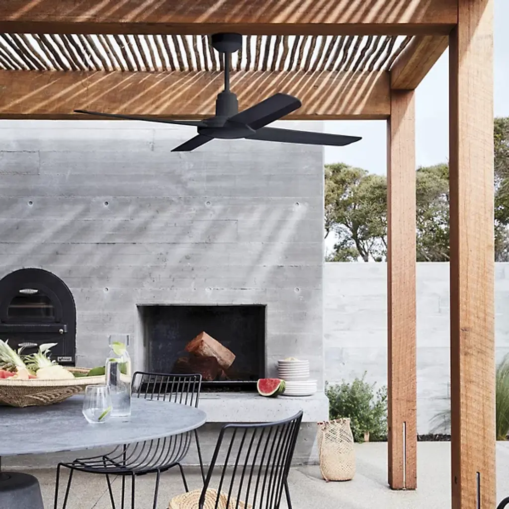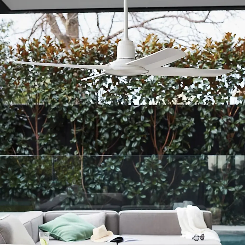 The Nautilus Lucci Air Outdoor Ceiling Fan by Beacon Lighting features a sleek, ultra-modern profile optimized for high-performance airflow in both indoor and outdoor environments. Designed by Lucci Air, the fan features four aerodynamically curved ABS blades engineered for maximum efficiency and durability while moving massive amounts of air. At its core, a robust die-cast DC motor operates quietly while delivering powerful, wet-rated performance. The fan operates at three forward and reverse speeds, all of which are managed with the included handheld remote.