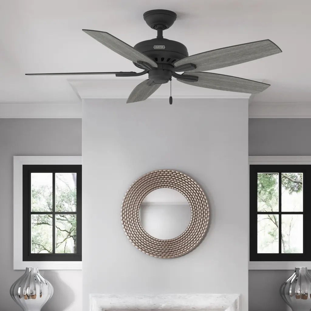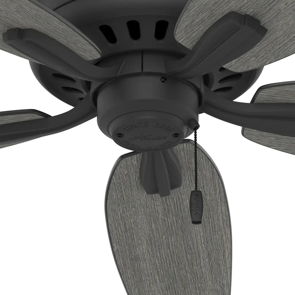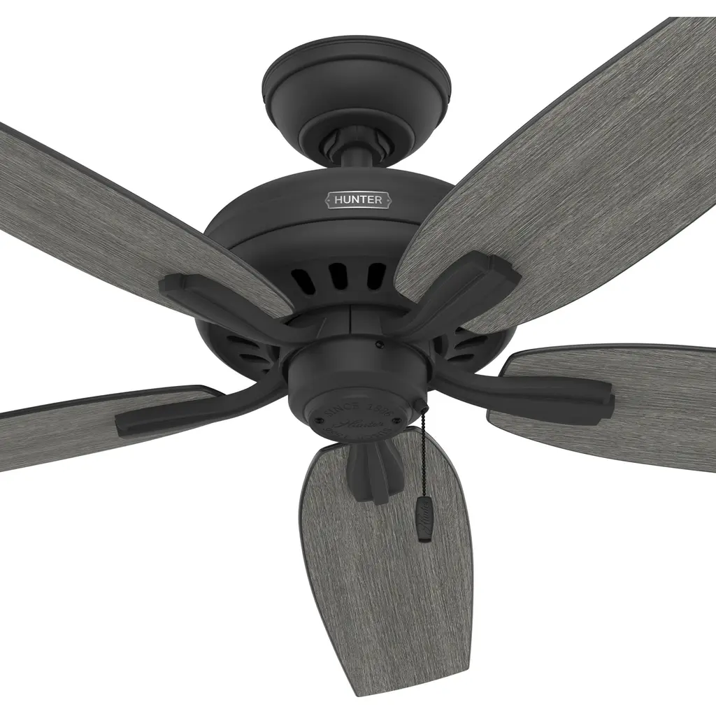 With its charming appearance, the Newsome traditional ceiling fan without light will complement your casual design style. The clean line details throughout the fan body and blade irons work together to create a coherent design that will fit any standard or large room space. The 52-inch blades are powered by a three-speed WhisperWind® motor delivering superior air movement and whisper-quiet performance so you get all the cooling power you want without the noise. The Newsome Collection offers you the freedom to choose from many different sizes, light kits, and other options to maintain a consistent look throughout every room in your home.