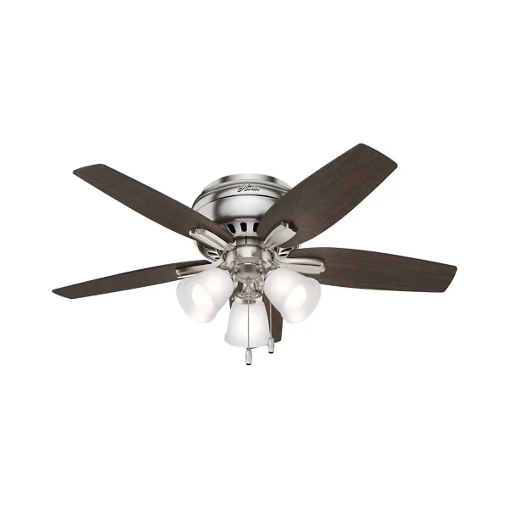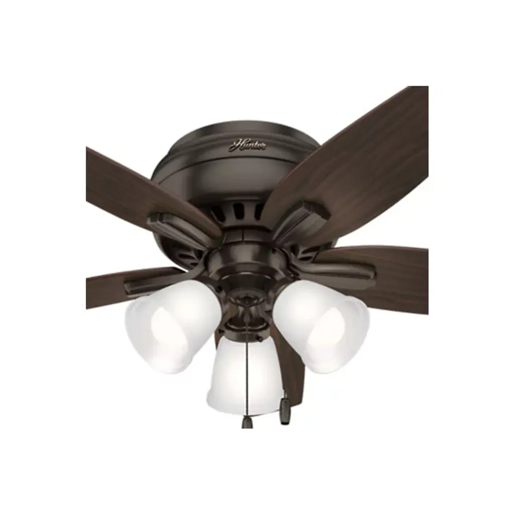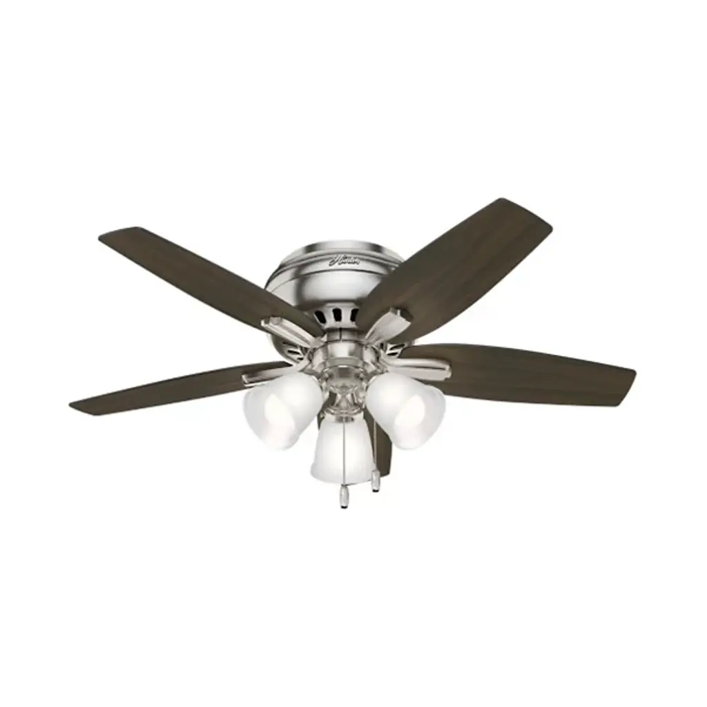 Casual in appearance yet charming as a focal point in home decor, the Newsome Low Profile Ceiling Fan with Light by Hunter Fans blends in seamlessly with contemporary living spaces. Constructed from a durable Aluminum material, the WhisperWind motor powers 5 Wood-toned blades, achieving ample airflow at a humble diameter of 42 inches. Fan comes with pull chain for quick and easy speed adjustments.