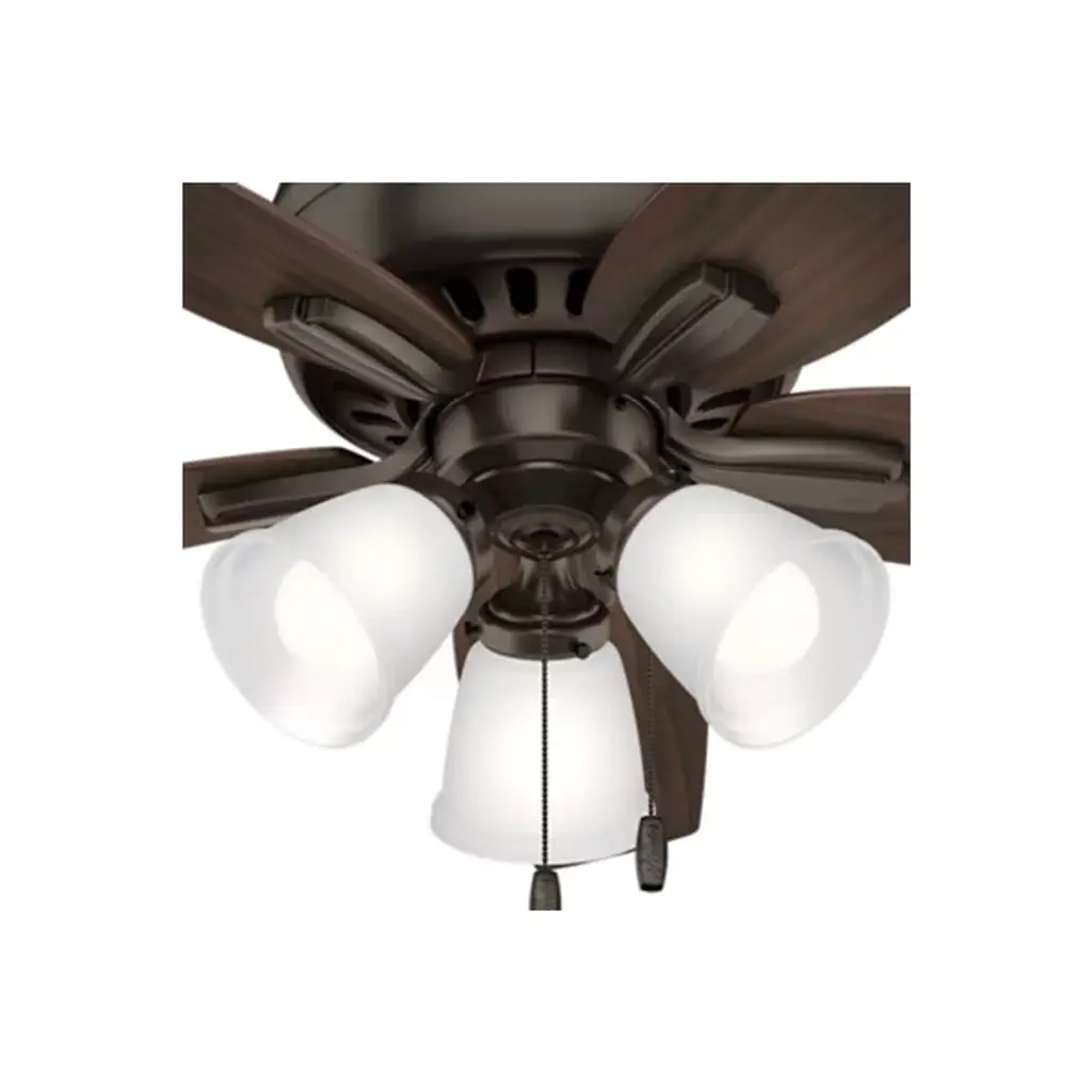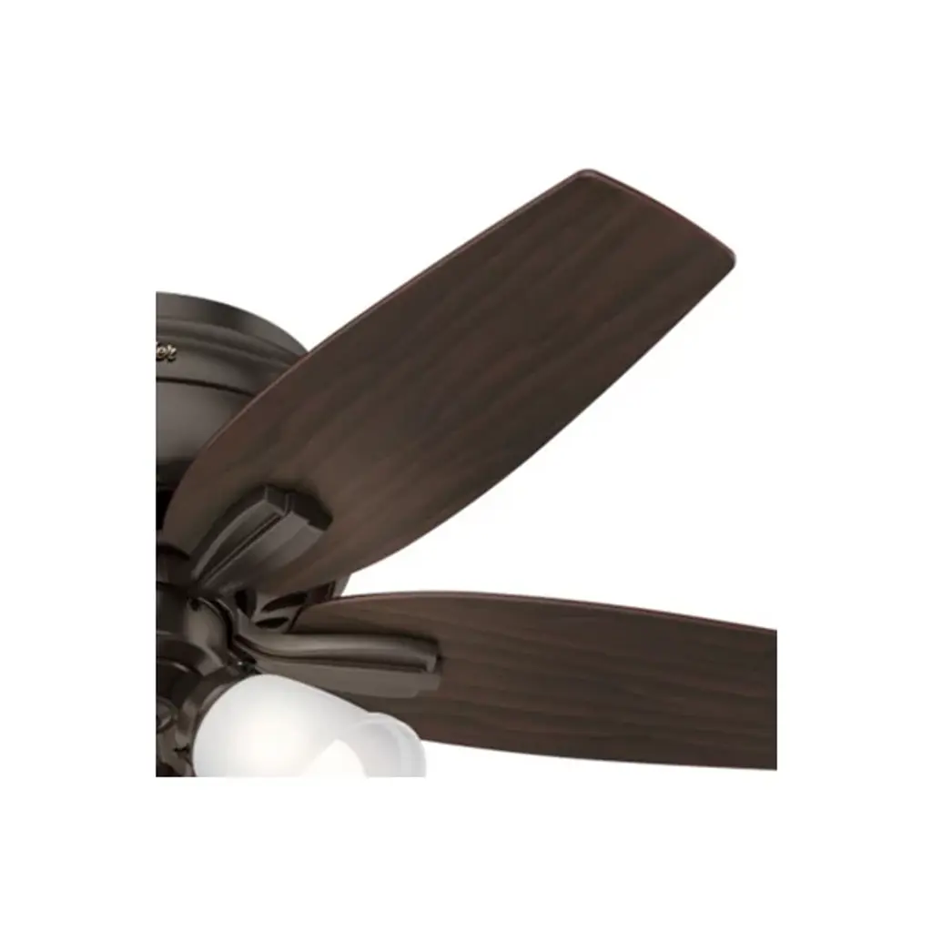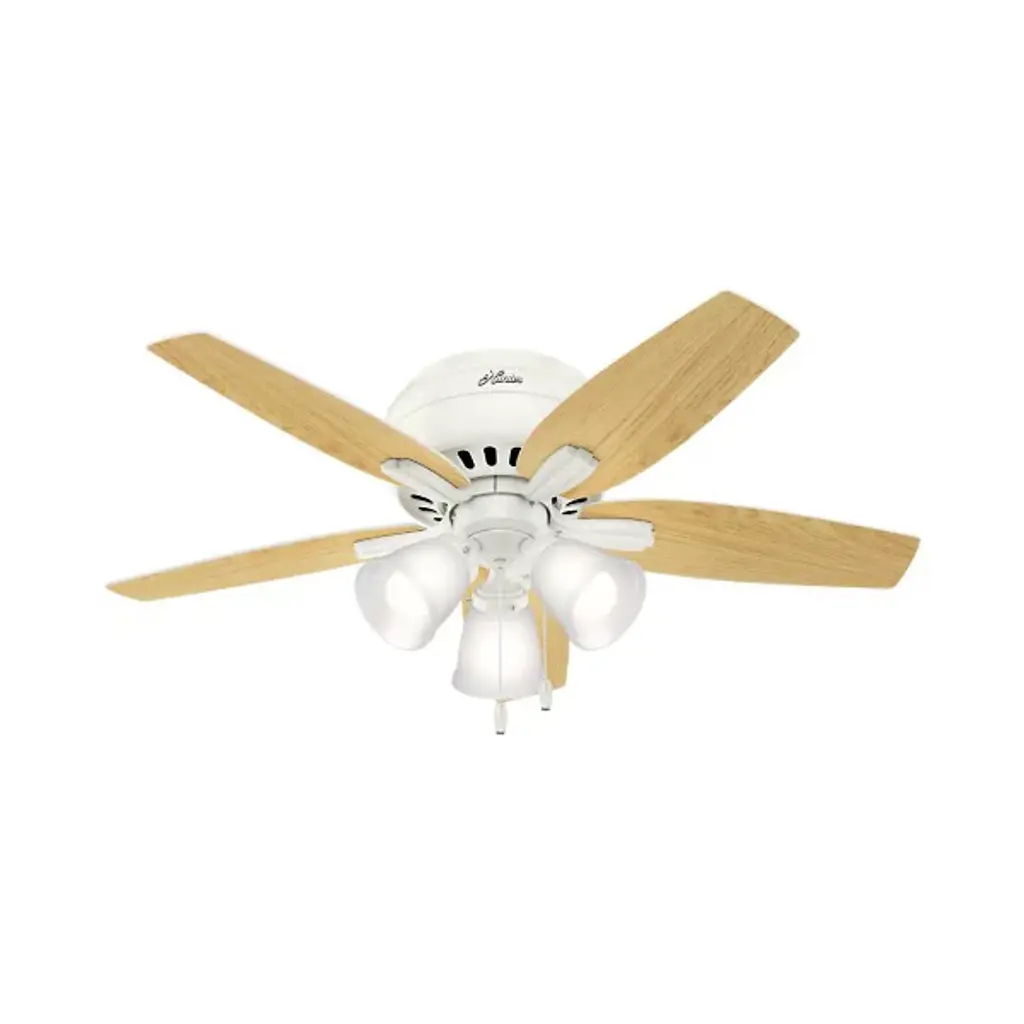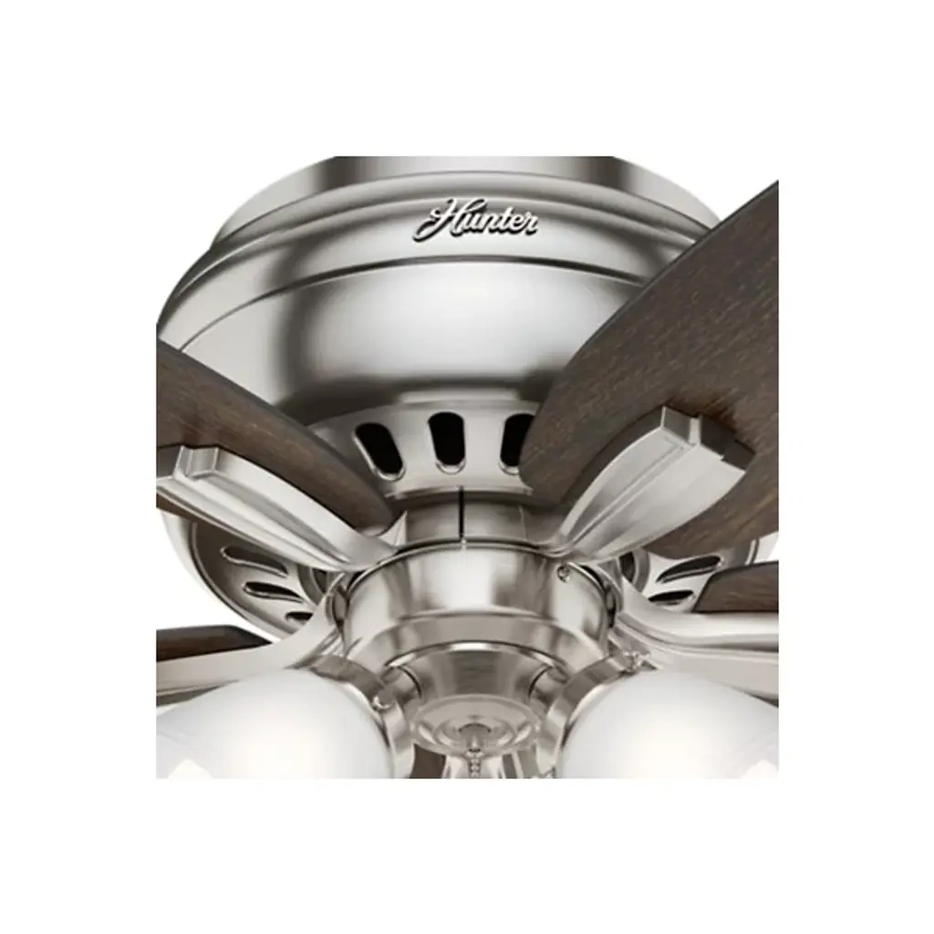 Casual in appearance yet charming as a focal point in home decor, the Newsome Low Profile Ceiling Fan with Light by Hunter Fans blends in seamlessly with contemporary living spaces. Constructed from a durable Aluminum material, the WhisperWind motor powers 5 Wood-toned blades, achieving ample airflow at a humble diameter of 42 inches. Fan comes with pull chain for quick and easy speed adjustments.