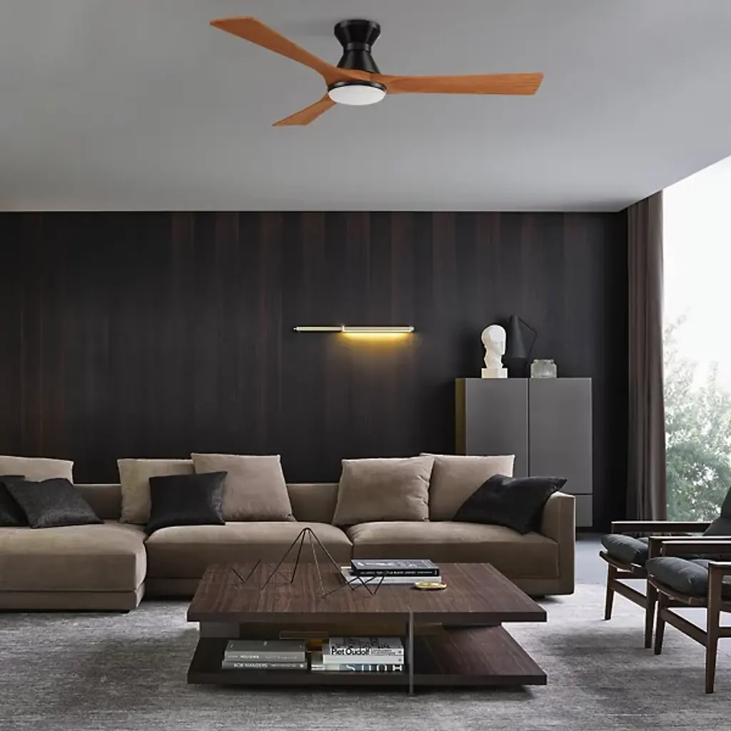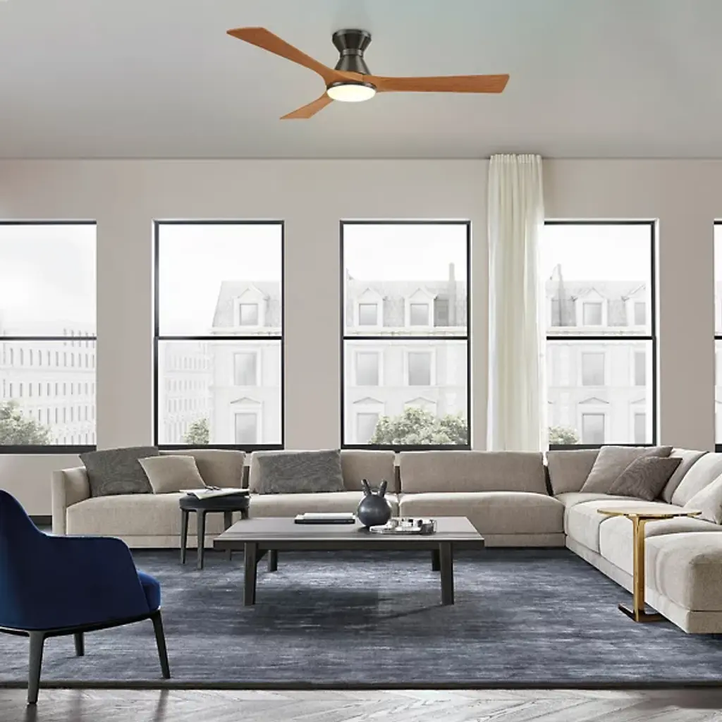 Provide a pleasant, abstract presence to living spaces with the sleek form and geometric shapes of the Nicolet Smart LED Ceiling Fan from Carro USA. Retained by a sleek hourglass housing, it sets strong, energy-efficient LED lamping beneath a translucent shade of softly-curved glass. The thick diffuser mellows bright light from the lamping, while the smooth, solid wood fan blades whirl with ease under the control of the included remote or through the use of a compatible app, tailoring the lighting and breeze to desired settings.
