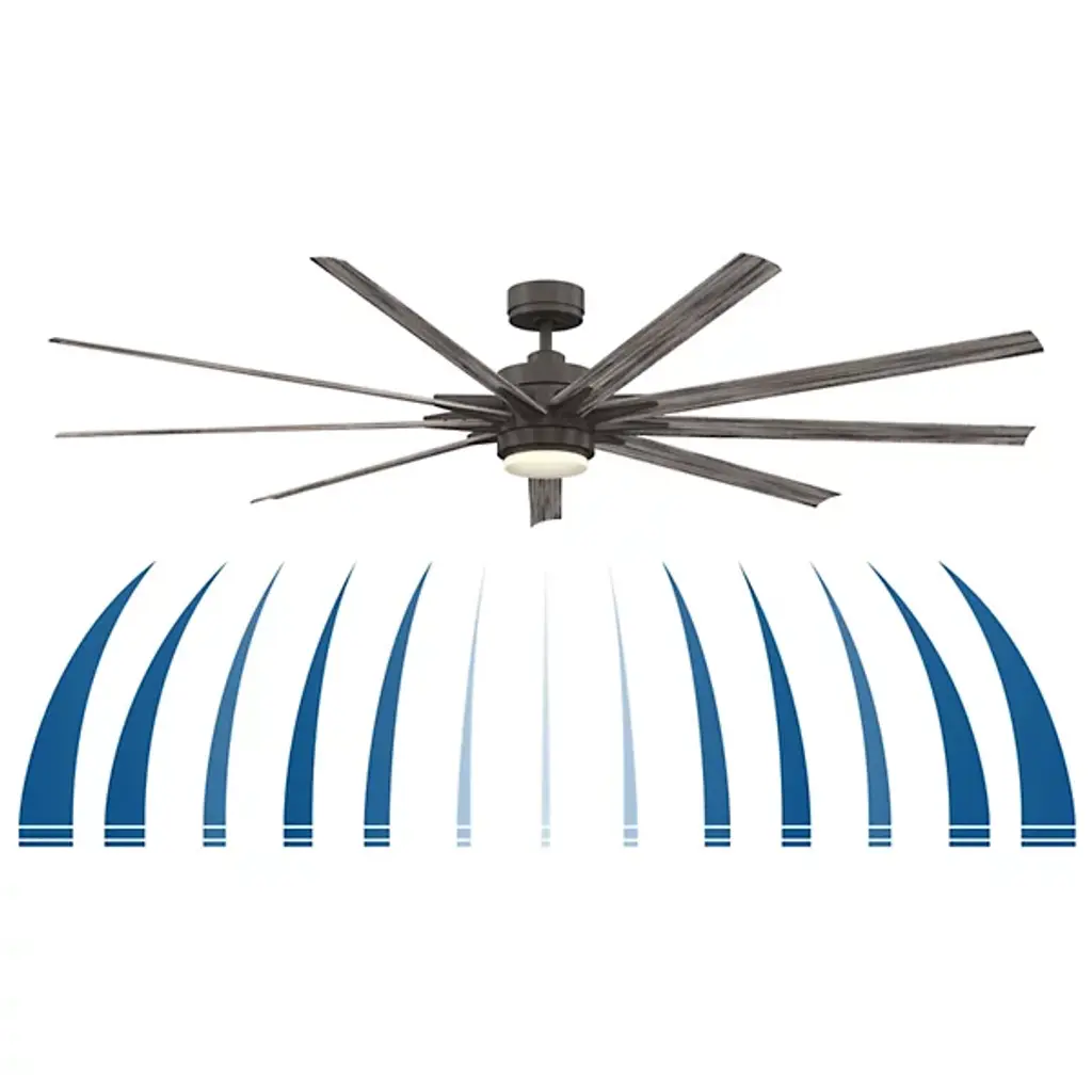 A very BIG fan, with a blade span of 84 inches (a whopping 7 feet). However, the Fanimation Odyn LED Indoor/Outdoor Ceiling Fan has a smaller side, too...an overall height of just under 18 inches. Just like the Norse god, the Odyn fan has many appealing contrasts: a powerful DC motor that uses minimal electricity, a bright white downlight that's also an energy-saving LED.