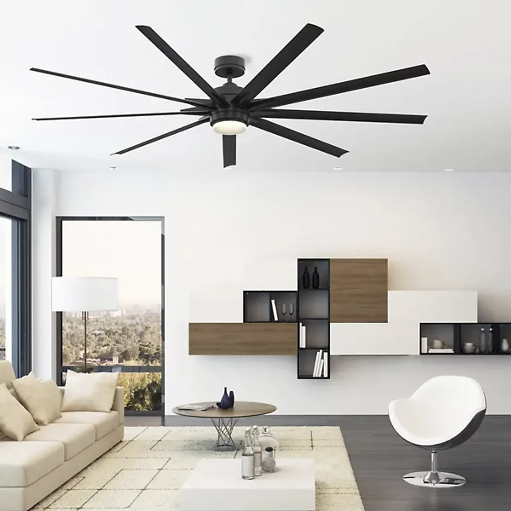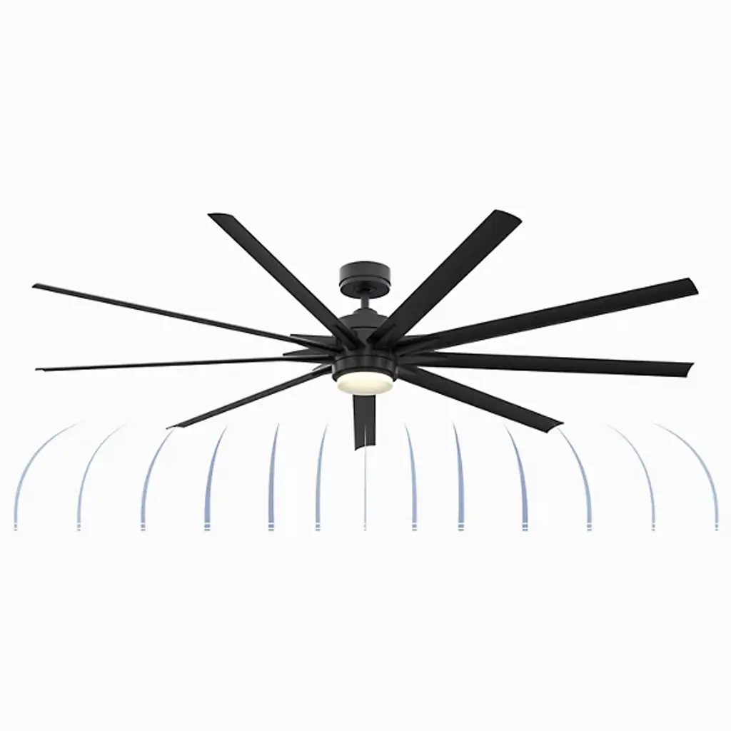 A very BIG fan, with a blade span of 84 inches (a whopping 7 feet). However, the Fanimation Odyn LED Indoor/Outdoor Ceiling Fan has a smaller side, too...an overall height of just under 18 inches. Just like the Norse god, the Odyn fan has many appealing contrasts: a powerful DC motor that uses minimal electricity, a bright white downlight that's also an energy-saving LED.