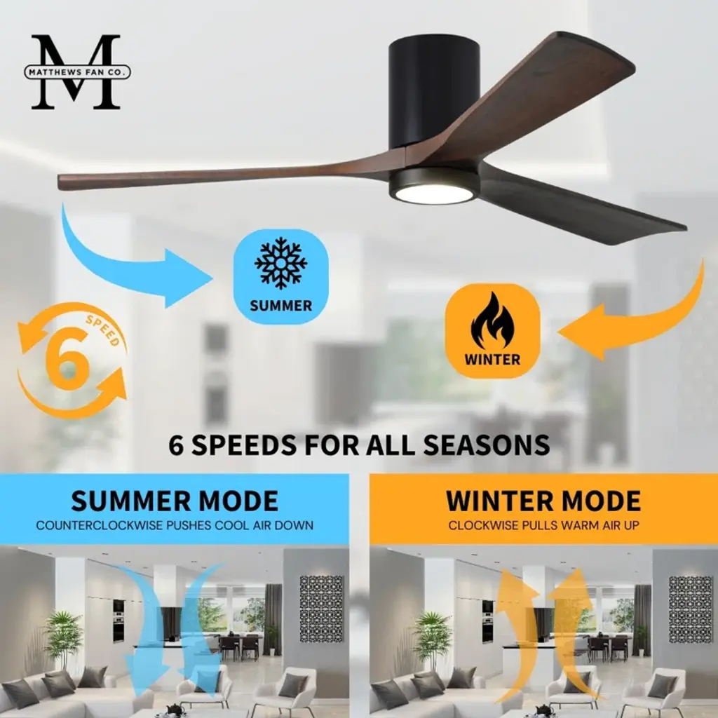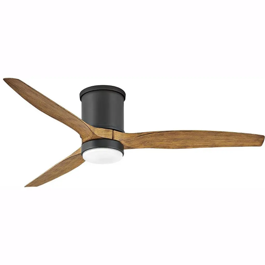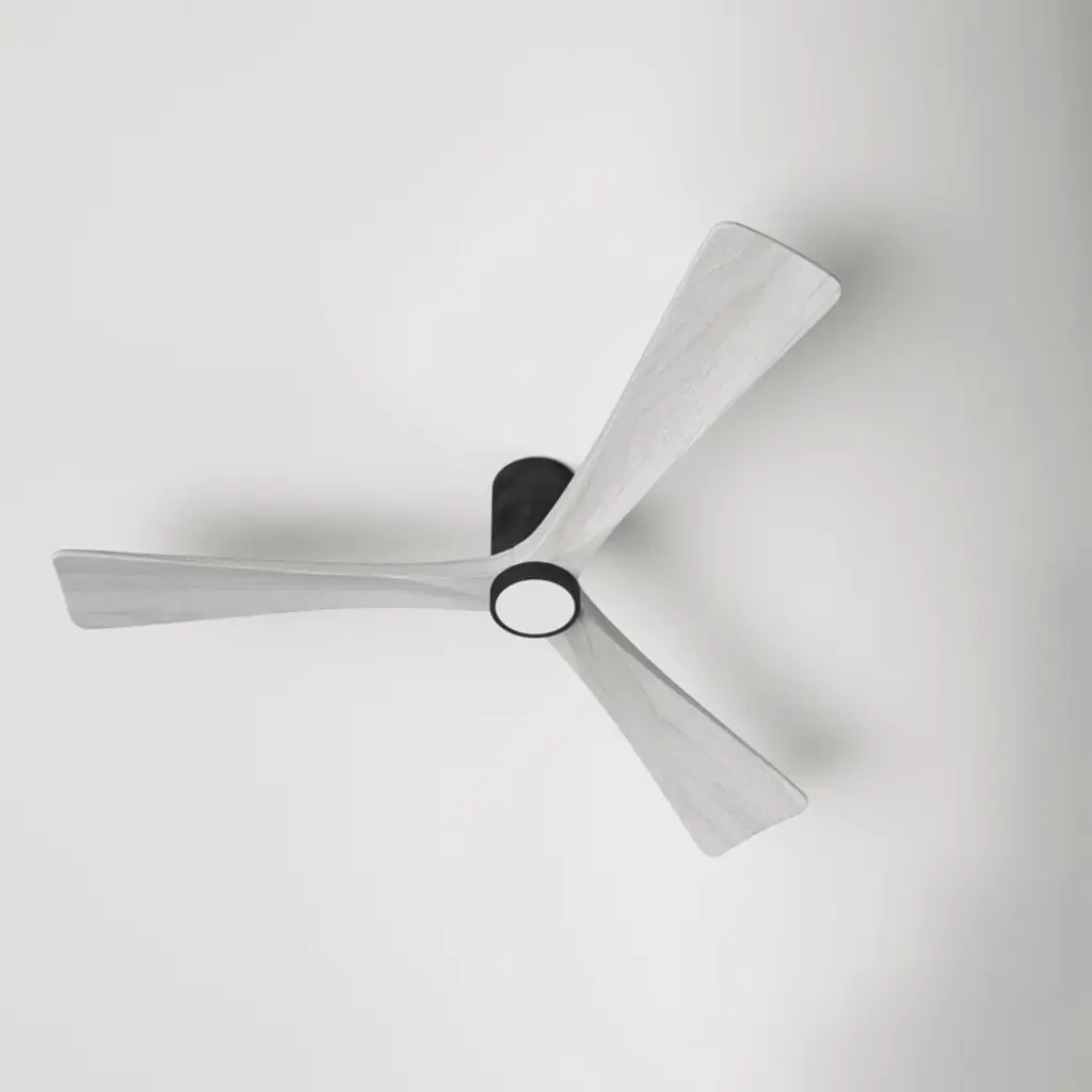 Wood + wind. Built with three solid walnut blades, this ceiling fan juxtaposes the rustic character of its wood grains against a neat minimalist silhouette. It spins at six speeds, which you control from a wall – or with the handy remote. An integrated LED light brightens your newly breezy space.