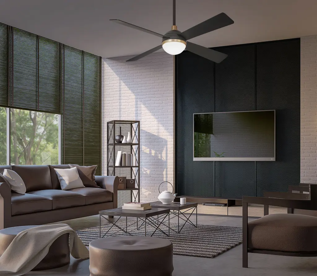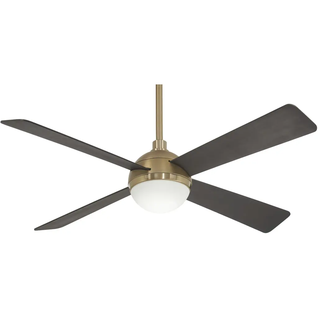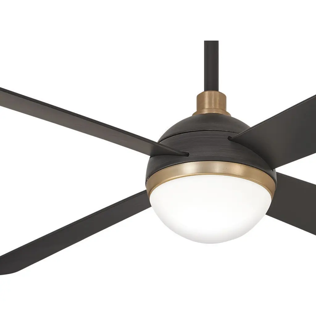 54" 4-Blade LED Ceiling Fan in a Brushed Carbon with Soft Brass Finish with Brushed Carbon Blades and Etched Opal Glass