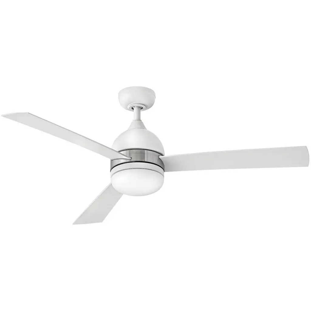 Fashioned with sophistication yet still giving plenty airflow into any modern interior space, the Orb Ceiling Fan is streamlined to perfection. It globe-like structure features beautiful metal accents to complement the overall design with plywood blades wrapped with a paper overlay for a smooth sleek surface. Orb has an integrated LED Light kit for light up any space whether it be in a bedroom, living or kitchen space.