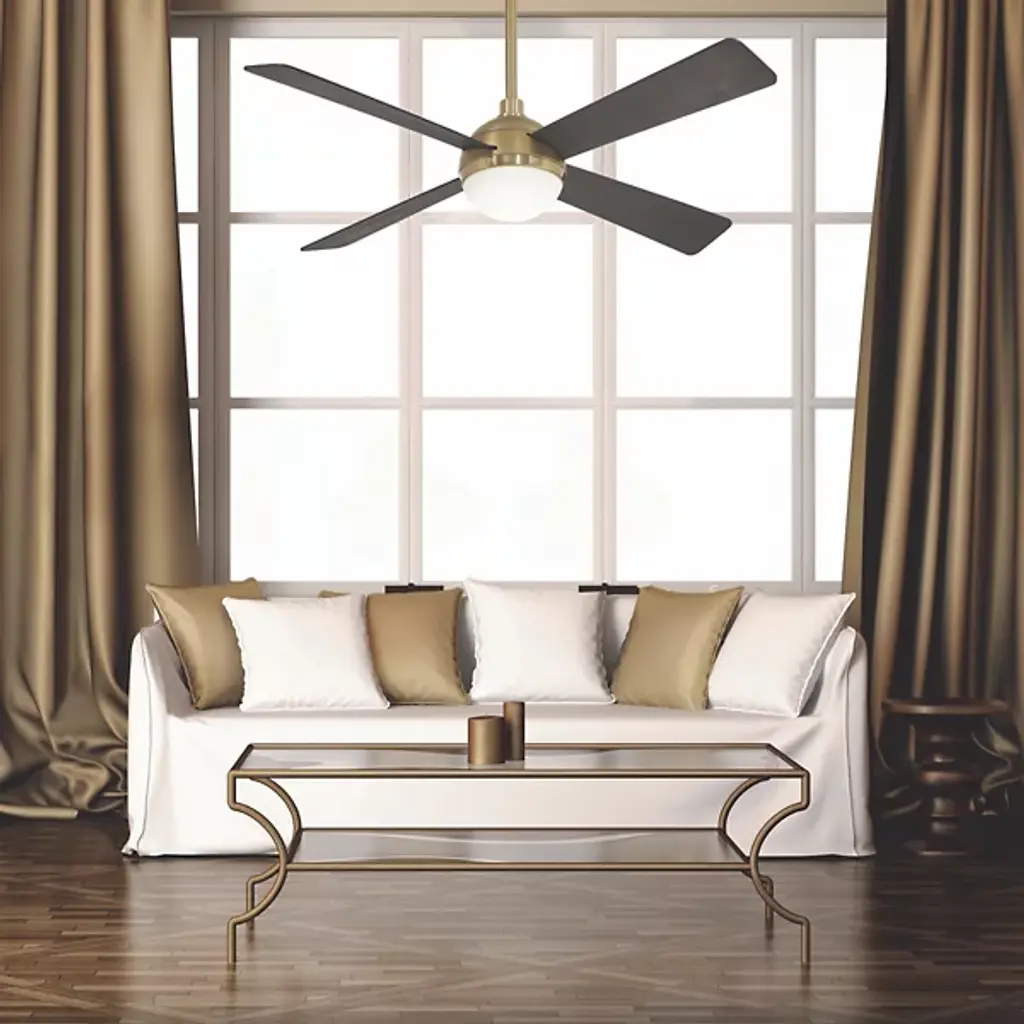 Fashioned with sophistication yet still giving plenty airflow into any modern interior space, the Orb Ceiling Fan is streamlined to perfection. It globe-like structure features beautiful metal accents to complement the overall design with plywood blades wrapped with a paper overlay for a smooth sleek surface. Orb has an integrated LED Light kit for light up any space whether it be in a bedroom, living or kitchen space.