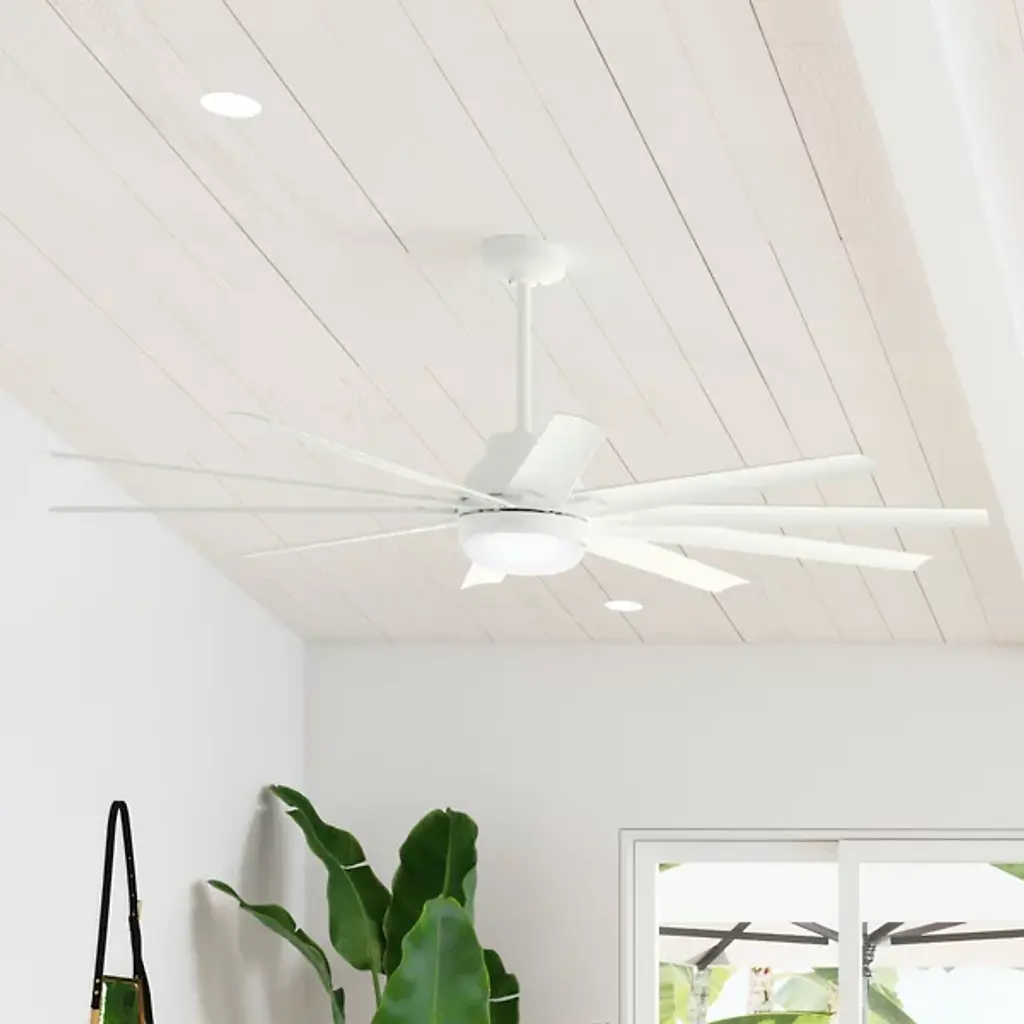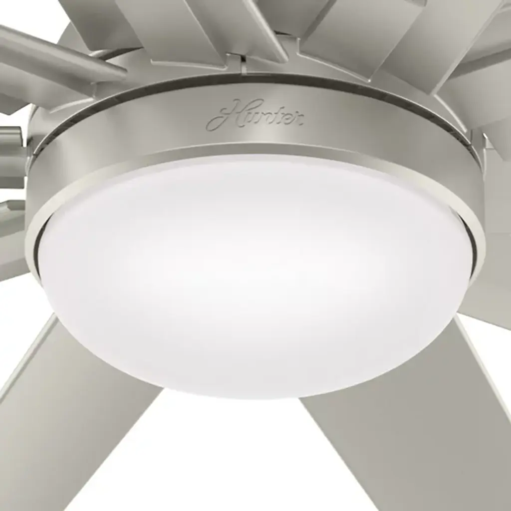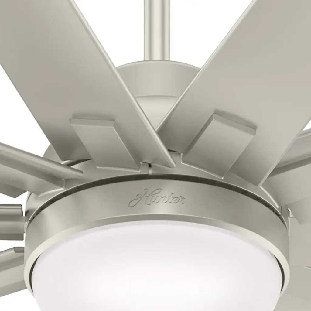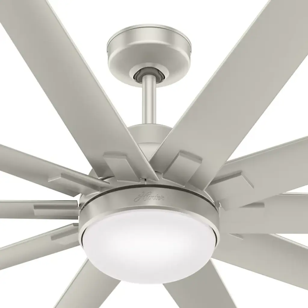 The Overton Ceiling Fan by Hunter Fans is an expansive design that is perfect for large, open-concept spaces. With a clean, contemporary build, this ten-blade fan offers optimal, high-speed cooling power that runs with a whisper-quiet DC motor. A simple light kit provides plenty of energy-efficient light as needed and can be operated, along with the six fan speeds and reversible option with an easy-to-use wall control to create a comfortable environment.
