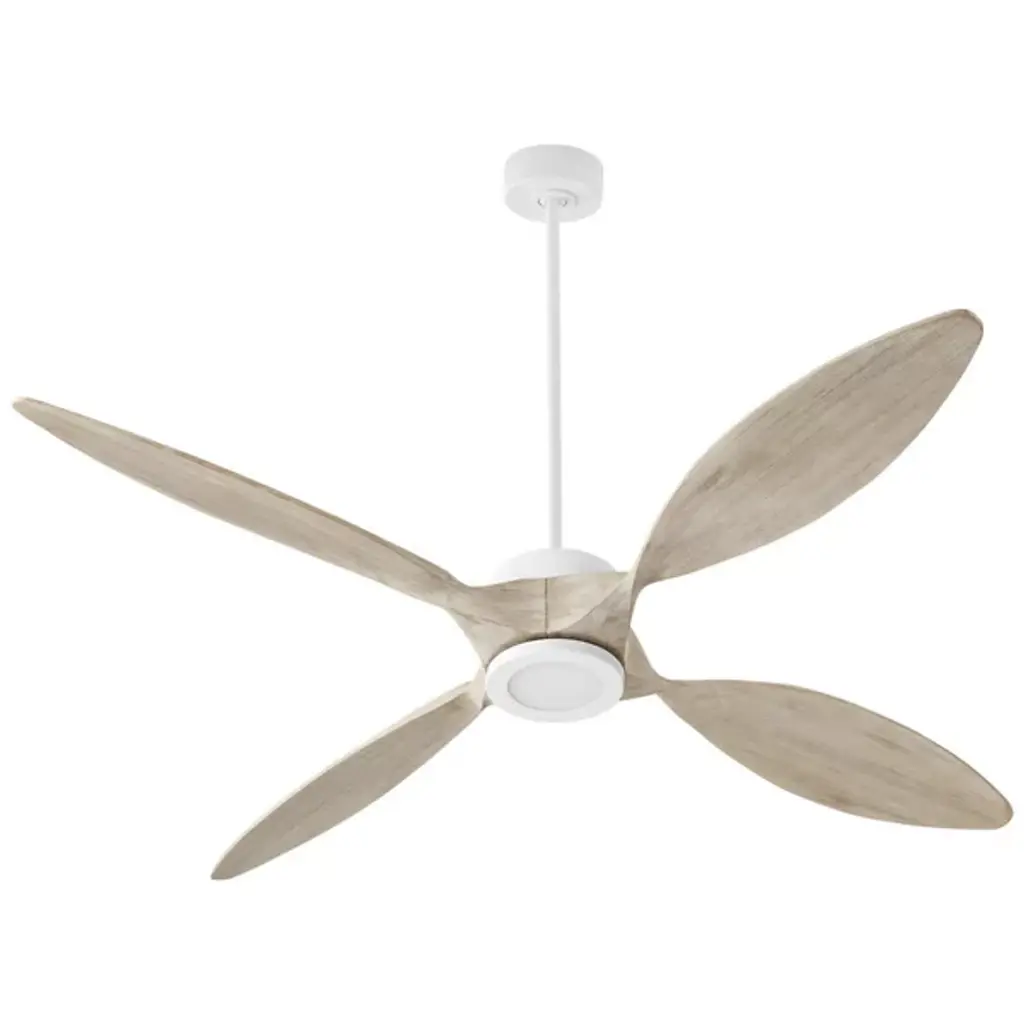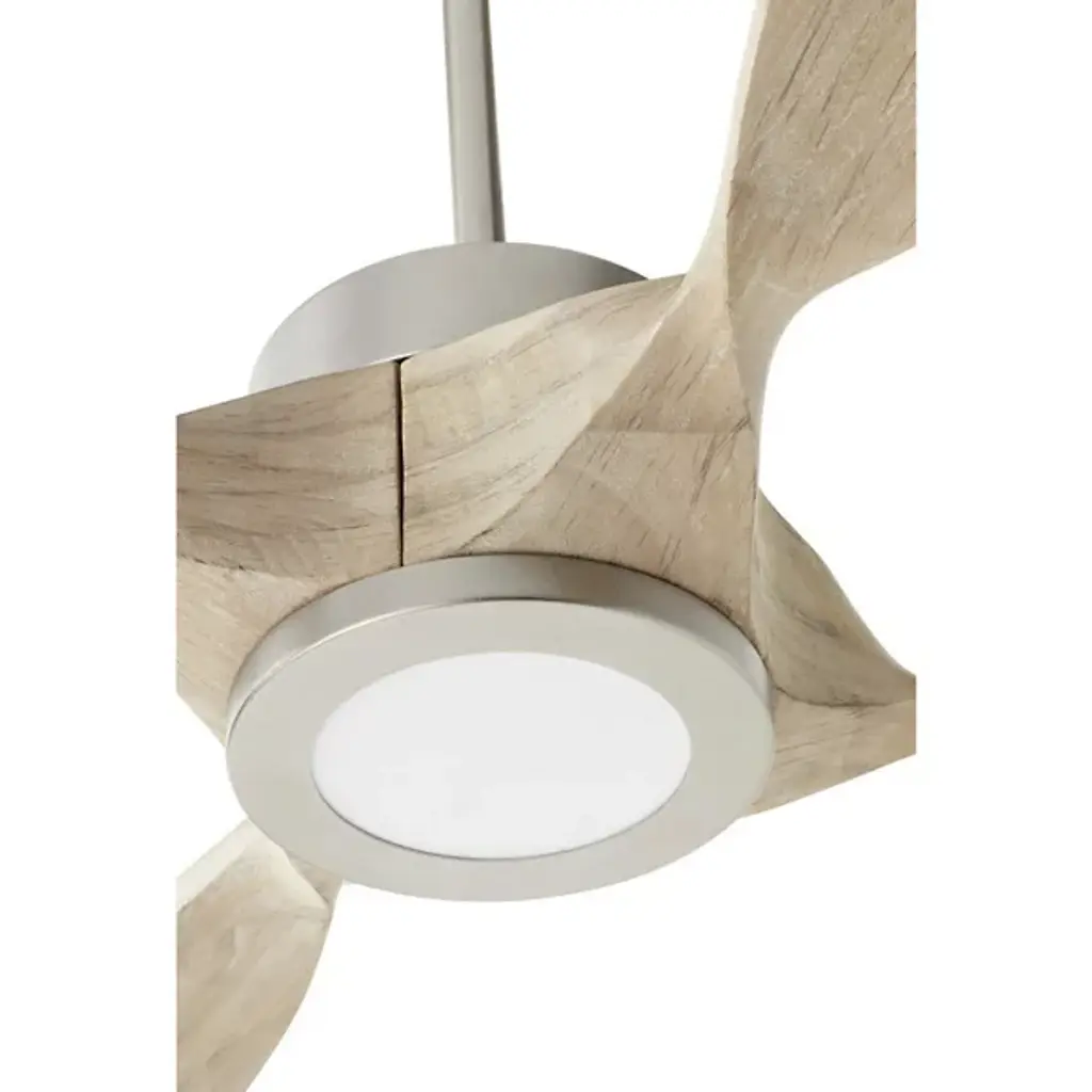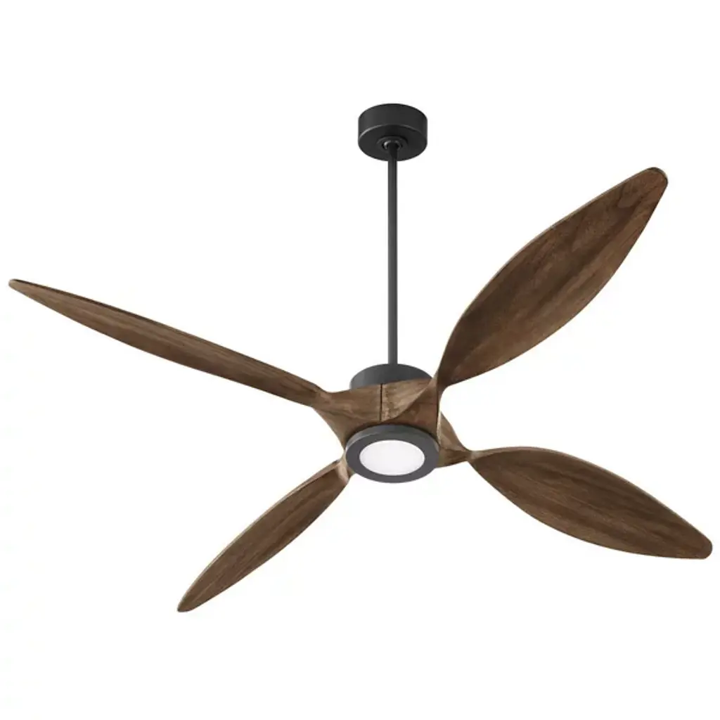 The Paillon Ceiling Fan from Quorum International is a contemporary piece, delighting by blending modern silhouettes and enduring finishes. The piece sets up elegantly on the ceiling with a short canopy and slender down rod. A compact engine helps drive the blades at a range of speeds in forward or reverse. The fan's functionality is adjustable via the control or WiFi-enabled devices. Here, contoured blades spread out like flower petals with smooth curves. The blades push an inviting breeze to the room.