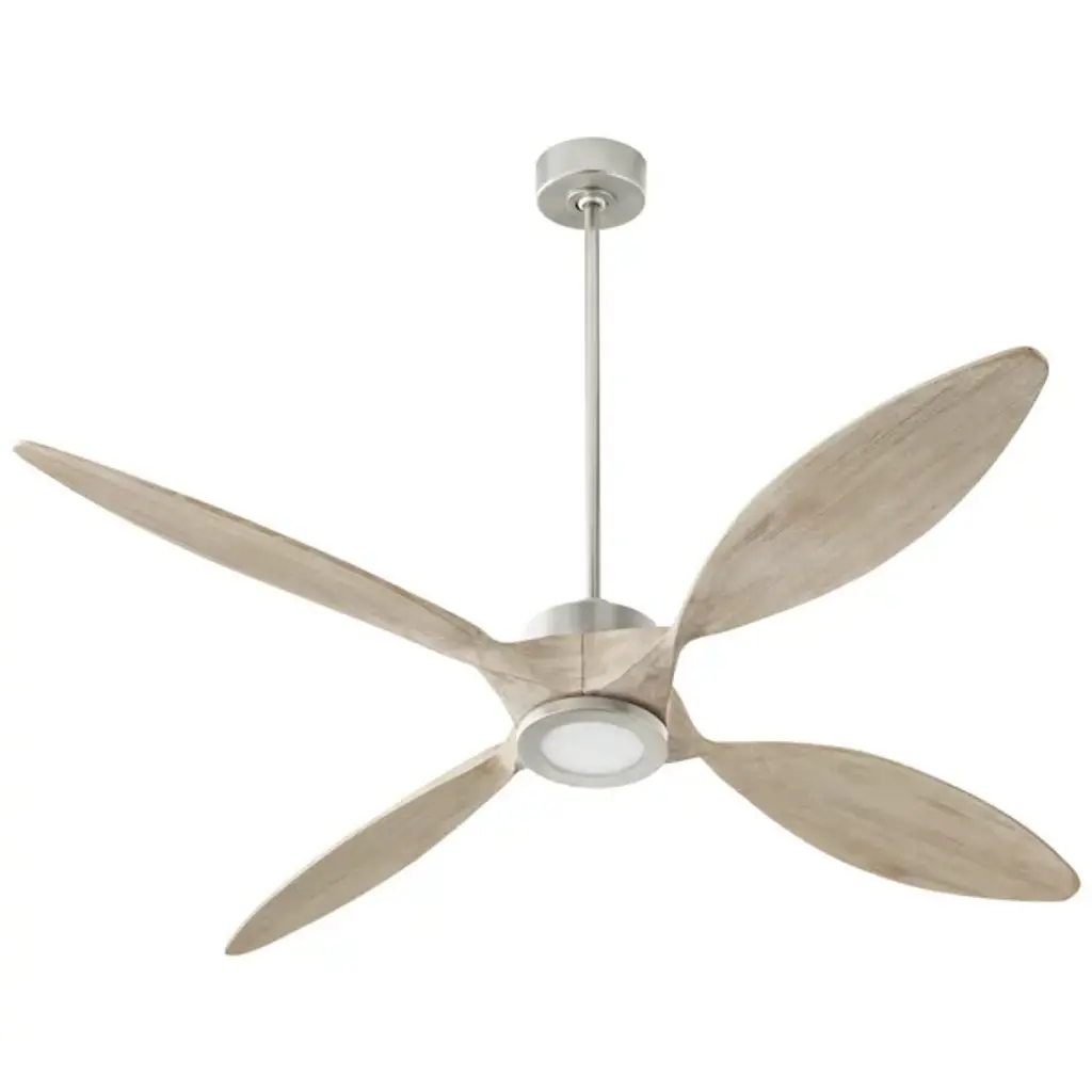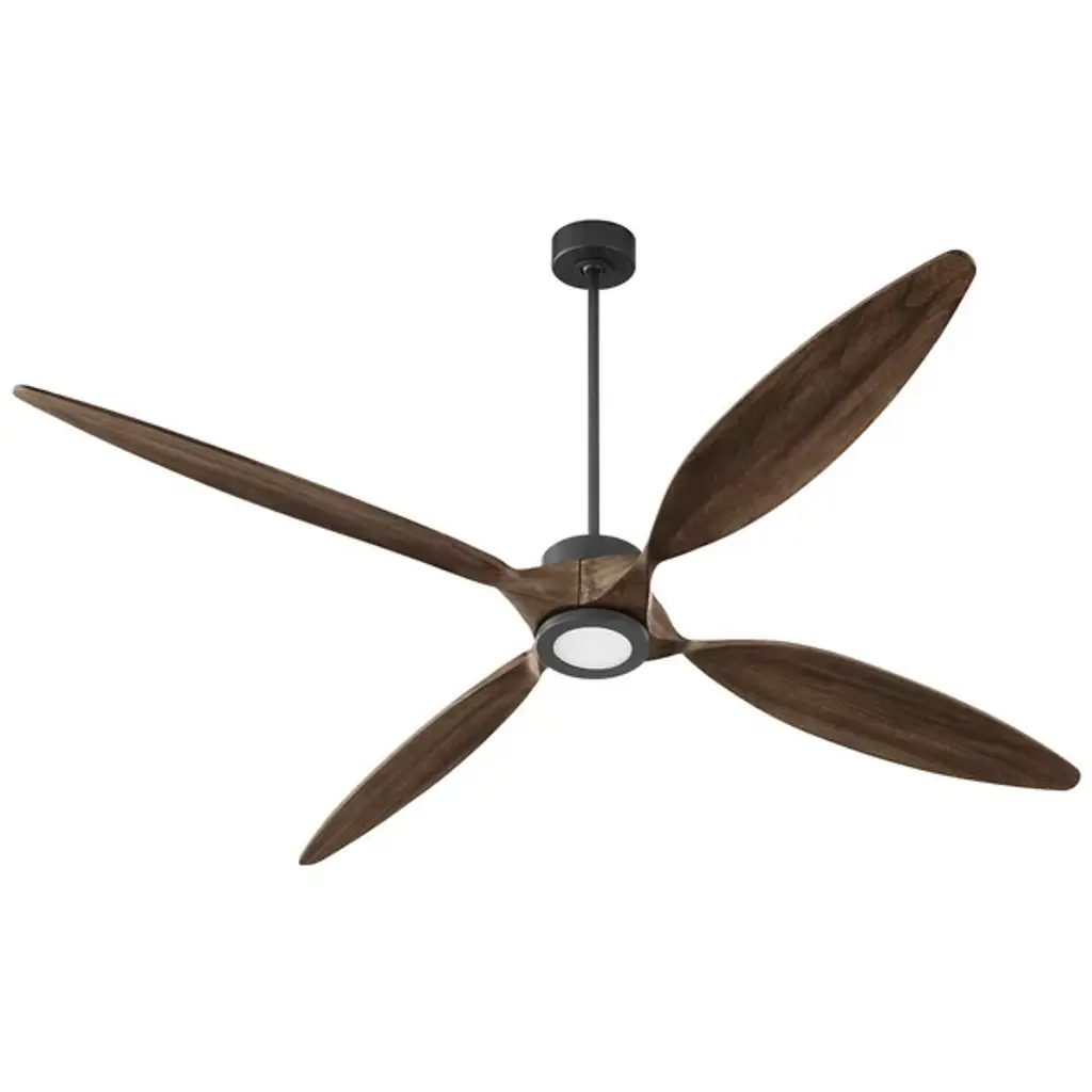 The Paillon Ceiling Fan from Quorum International is a contemporary piece, delighting by blending modern silhouettes and enduring finishes. The piece sets up elegantly on the ceiling with a short canopy and slender down rod. A compact engine helps drive the blades at a range of speeds in forward or reverse. The fan's functionality is adjustable via the control or WiFi-enabled devices. Here, contoured blades spread out like flower petals with smooth curves. The blades push an inviting breeze to the room.