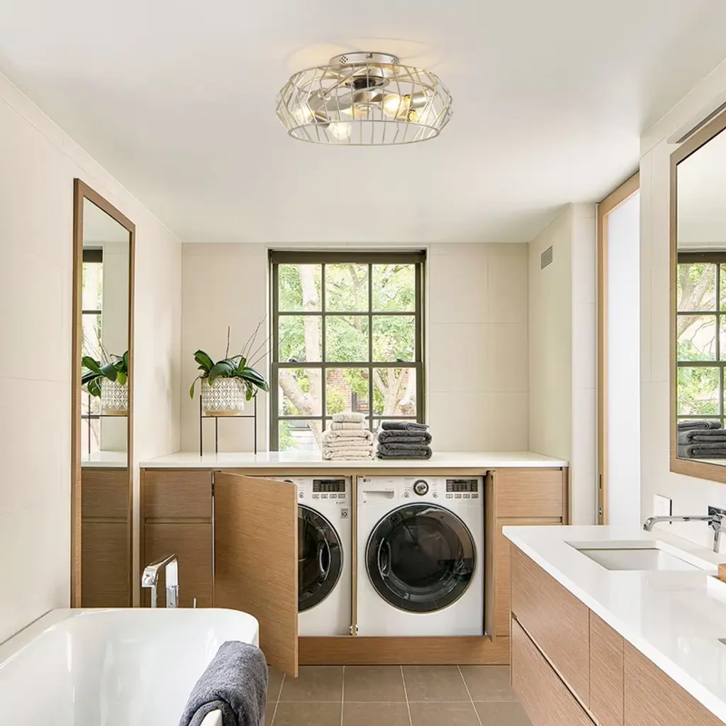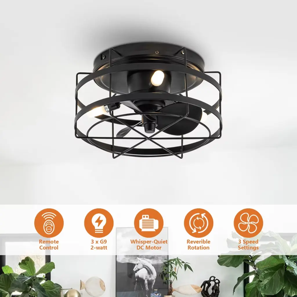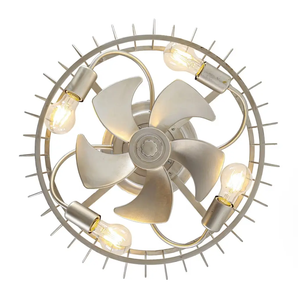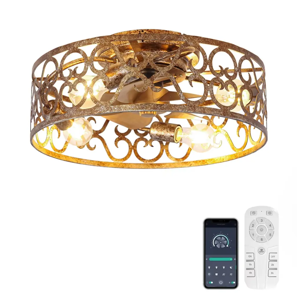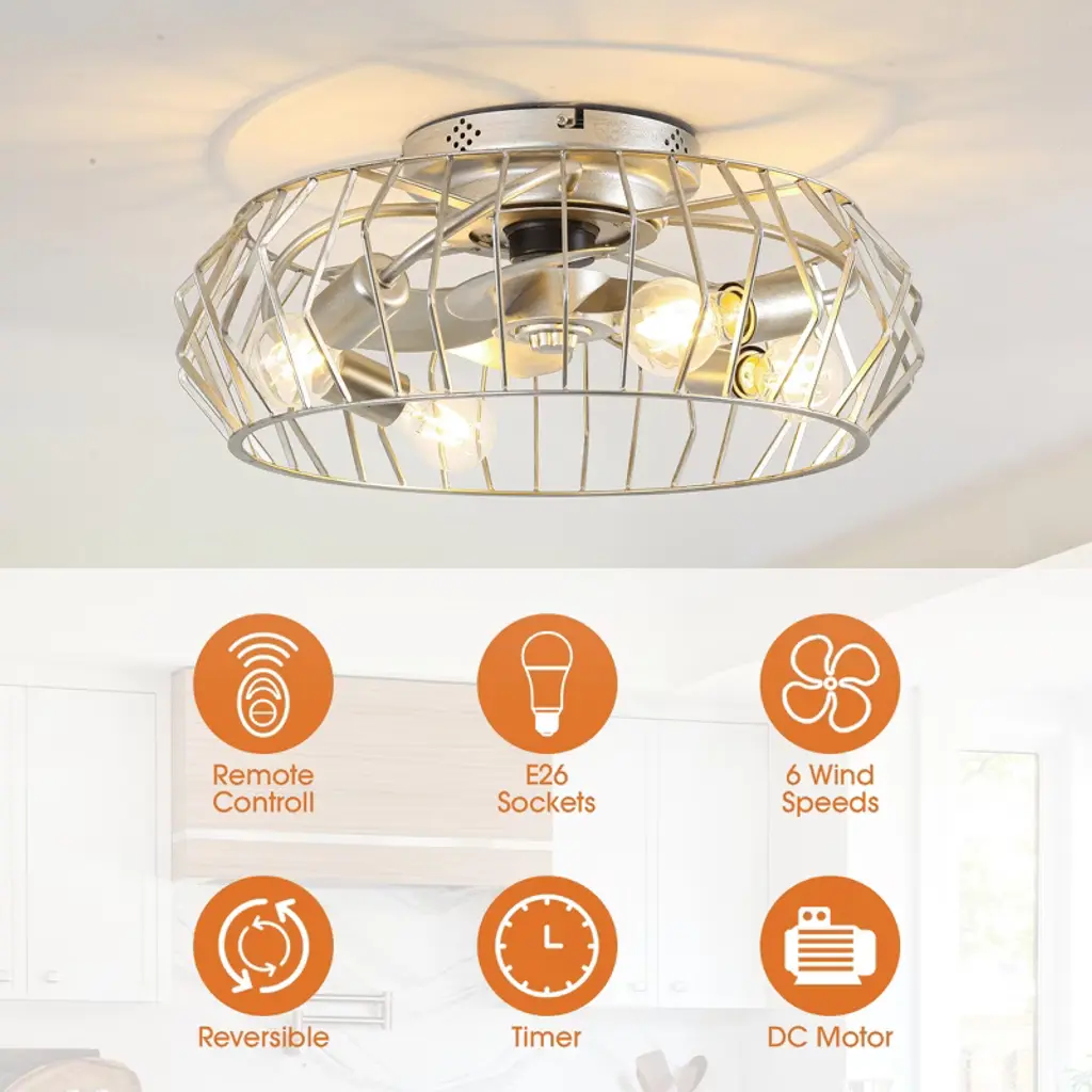 This modern ceiling fan with light is especially suitable for rooms with small spaces and enables fast air circulation. The metal cut-out cage ceiling fan has five fan blades paired with a powerful DC motor and has 6 adjustable air speeds. A remote control is included so you can use it freely as you wish. Support multiple control methods, remote control, APP control, and voice assistant.