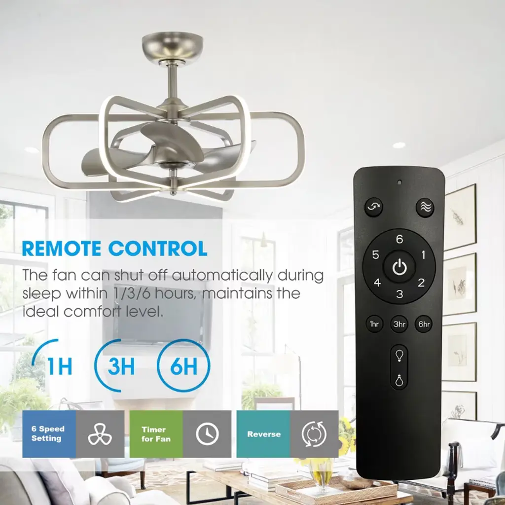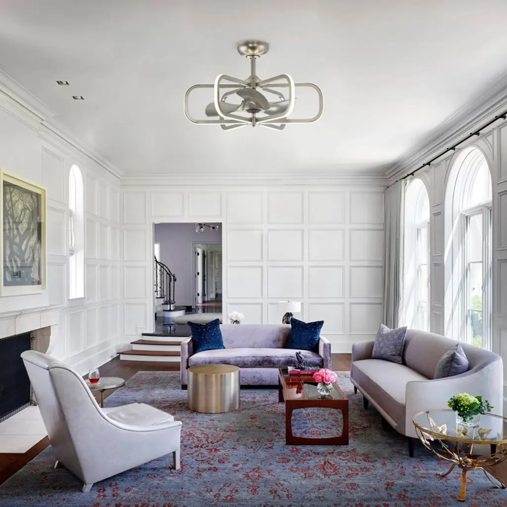 This 30-inch modern caged ceiling fan has a hollowed-out metal shade with a minimalist light bar, giving it a different kind of aesthetic. The powerful, reversible motor fan is capable of accommodating room use for efficient air circulation.30-inch bladeless ceiling fans are especially good for small bedrooms and living rooms.