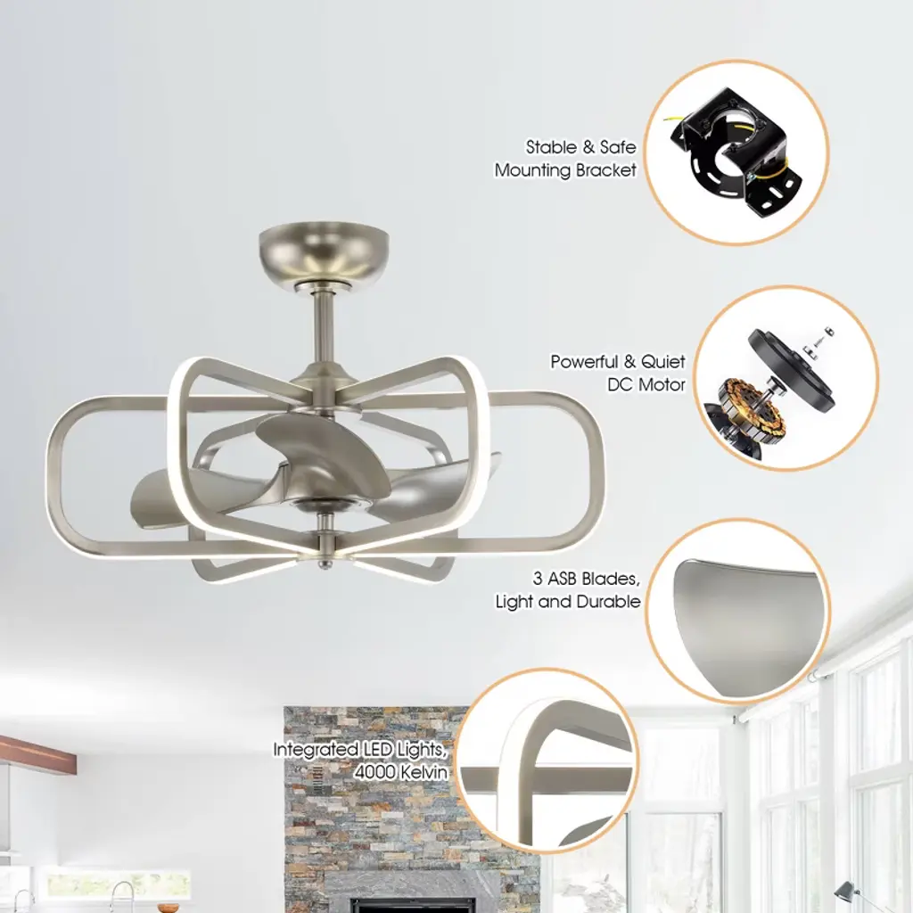 Parrot Uncle 30" Satin Nickel Led Ceiling Fan With Lights And Remote Control Bladeless Ceiling Fan