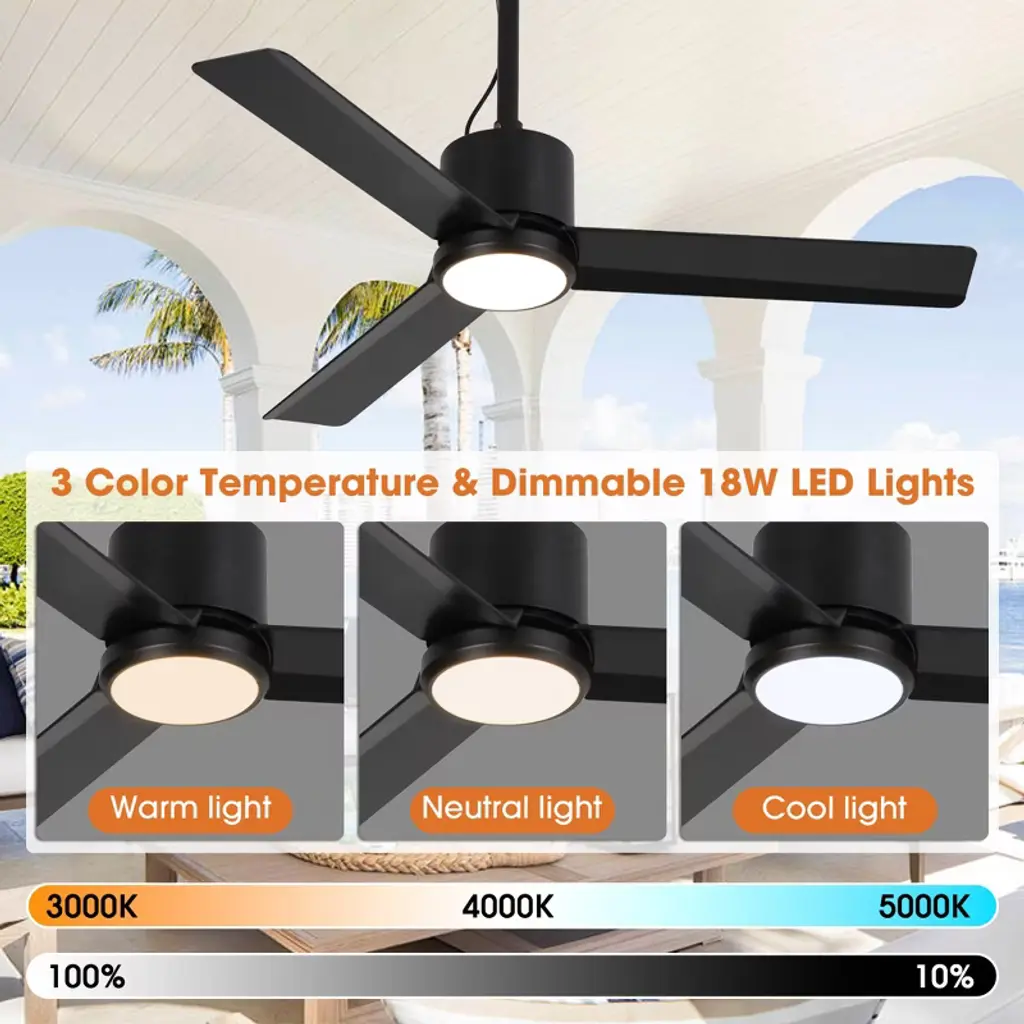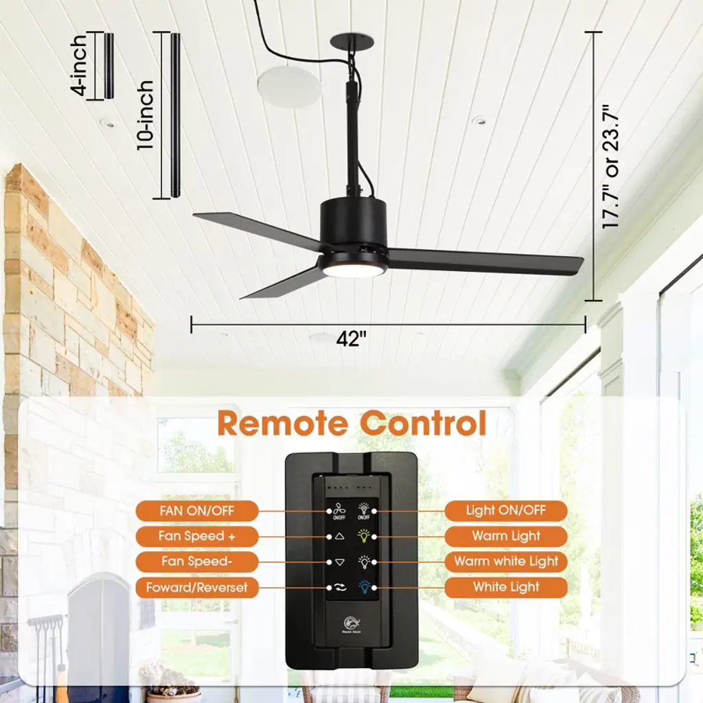42-Inch Modern Outdoor Ceiling Fan with Integrated Light. This sleek ceiling fan combines contemporary design and functionality to elevate your home’s style. The adjustable airflow settings deliver optimized air circulation for any season, while the built-in light provides warm, even illumination to complete your space. Energy-efficient and versatile, it’s the ideal blend of modern aesthetics and everyday practicality