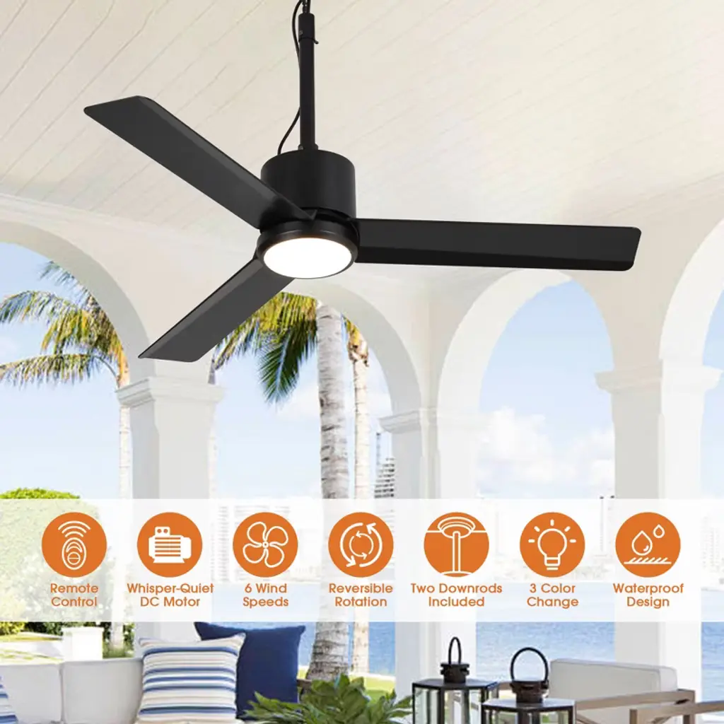 Parrot Uncle 42" Black Modern Outdoor Led Ceiling Fan With Light And Remote Integrated Led Light