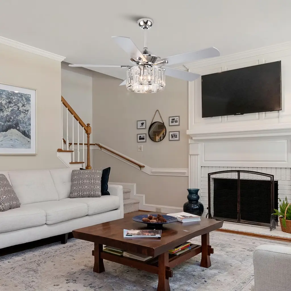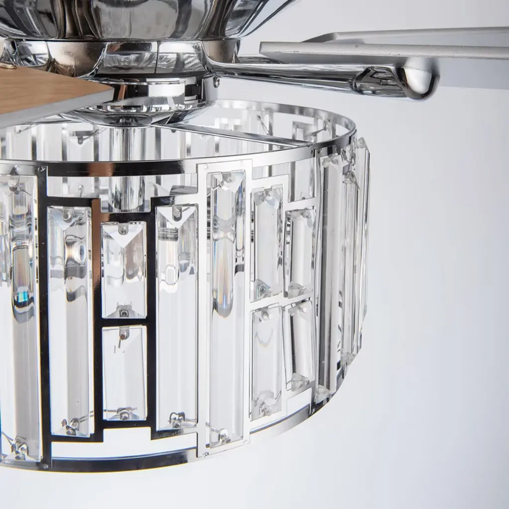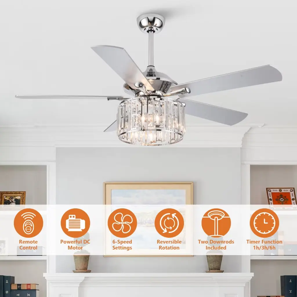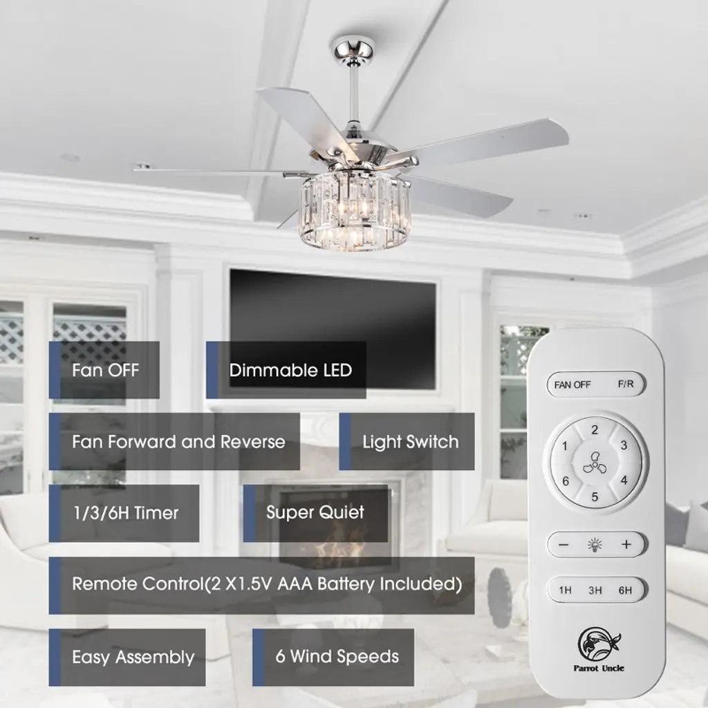 Parrot Uncle 52" Chrome Modern Crystal Ceiling Fan With Light And Remote For Kitchen Bedroom Living Room