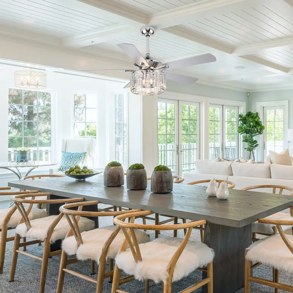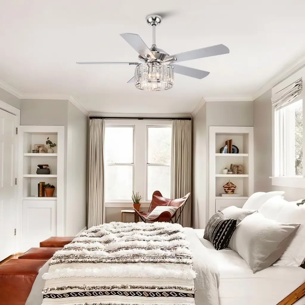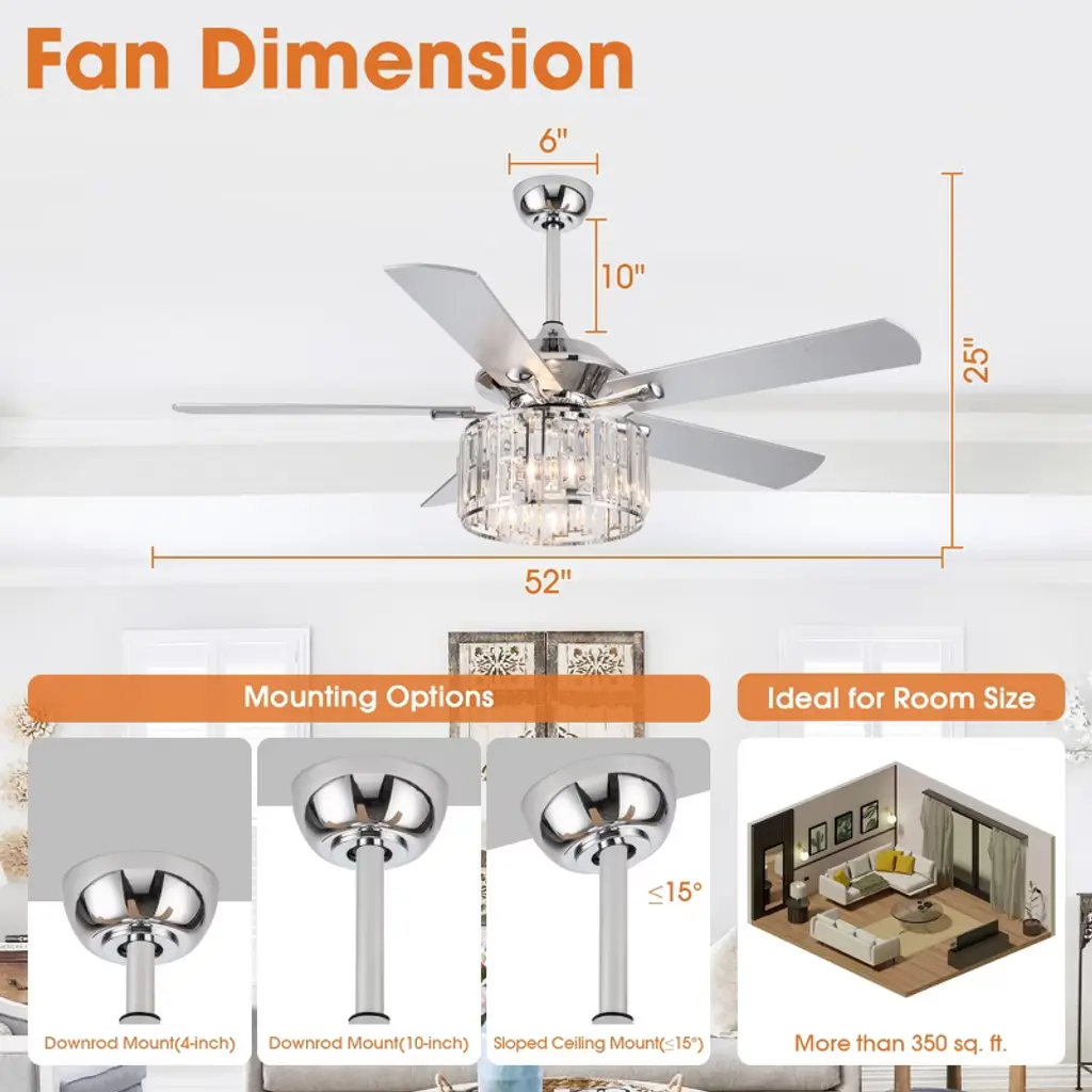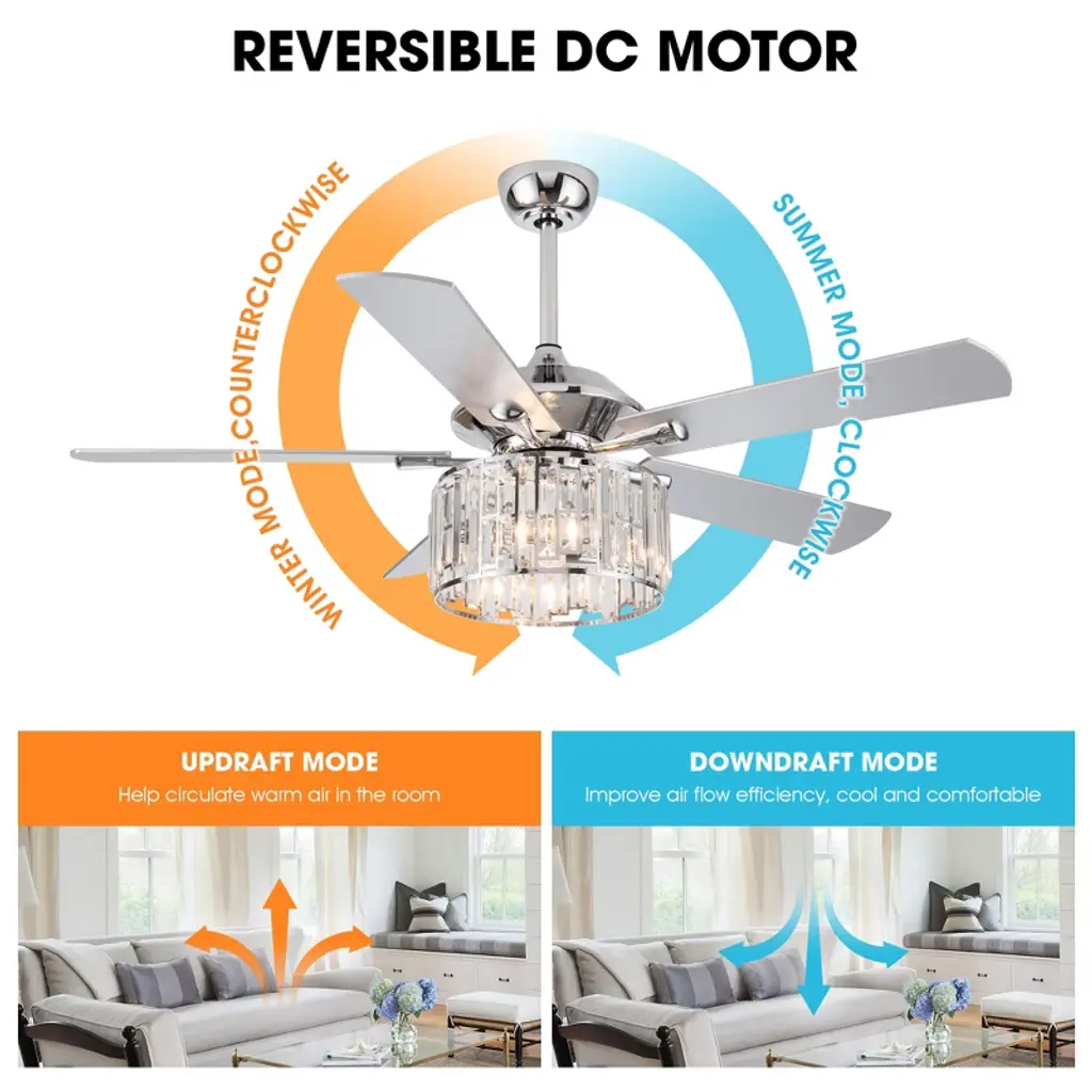 Parrot Uncle 52" Chrome Modern Crystal Ceiling Fan With Light And Remote For Kitchen Bedroom Living Room