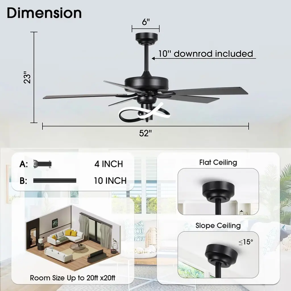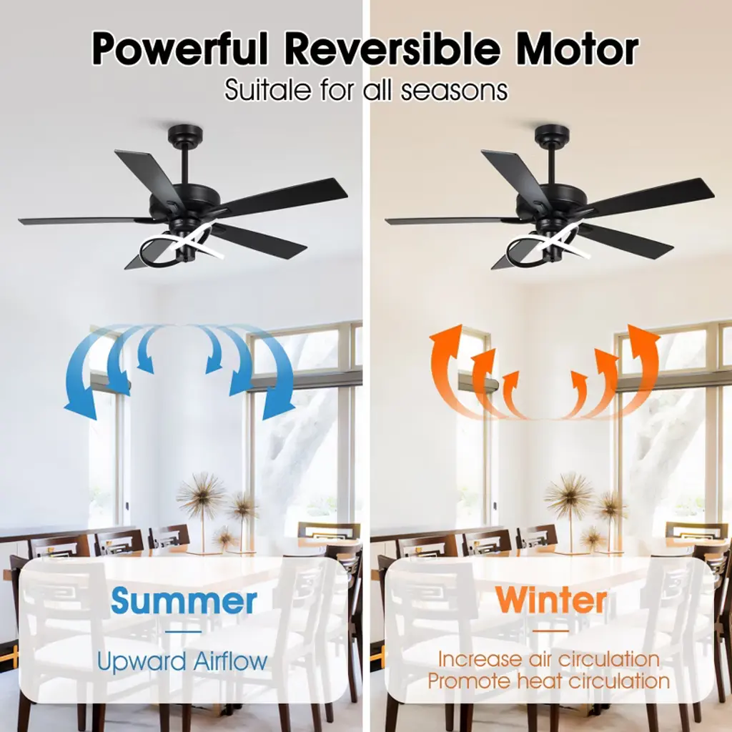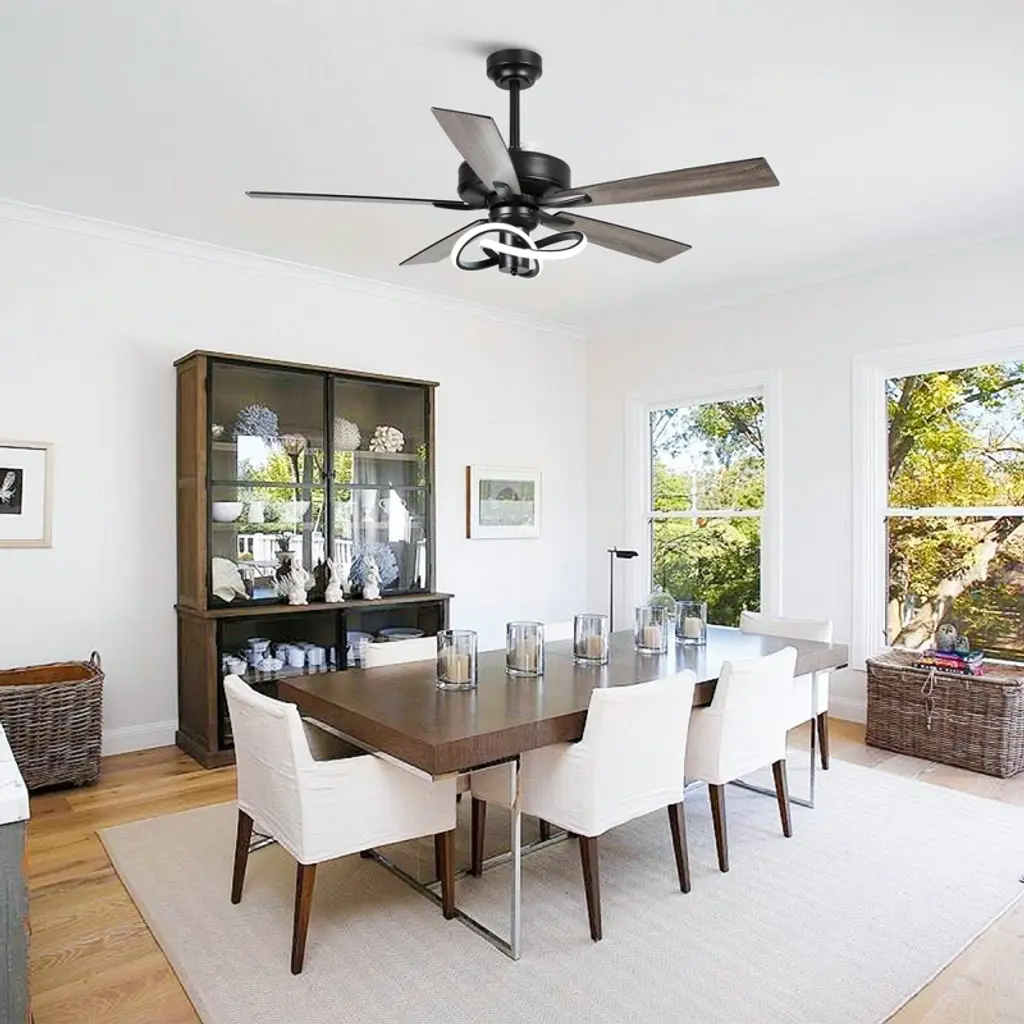 The 52-inch LED fan from Parrot Uncle features a contemporary style design. The reversible two-color fan blades give you more options for your home decor. The light fixture is styled with a light bar wrap, bringing you brightness while adding aesthetic appeal. The reversible motor and design provide adjustable airflow for super-efficient air circulation, whether you want to cool down on a sweltering summer day or circulate warm air on a cold winter day.