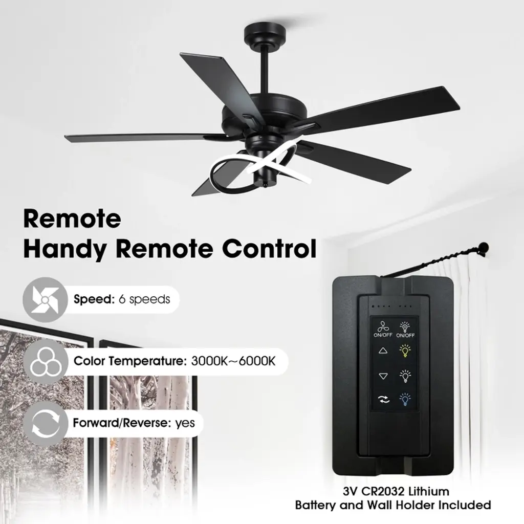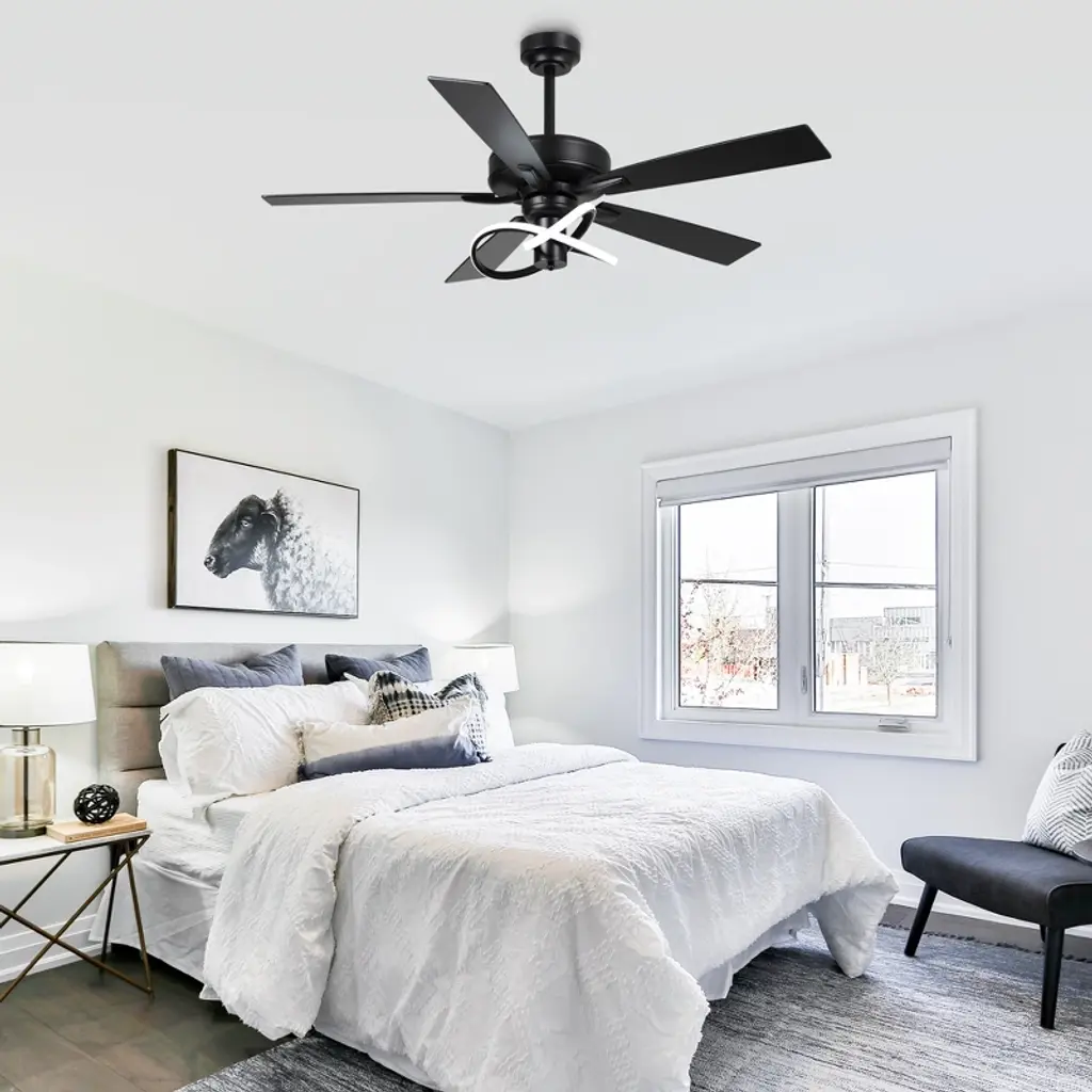 Parrot Uncle 52-inch Modern Black Led Ceiling Fan With Lights And Remote For Kitchen And Living Room