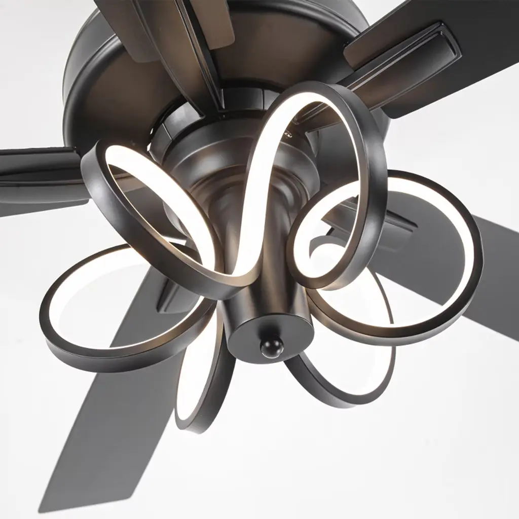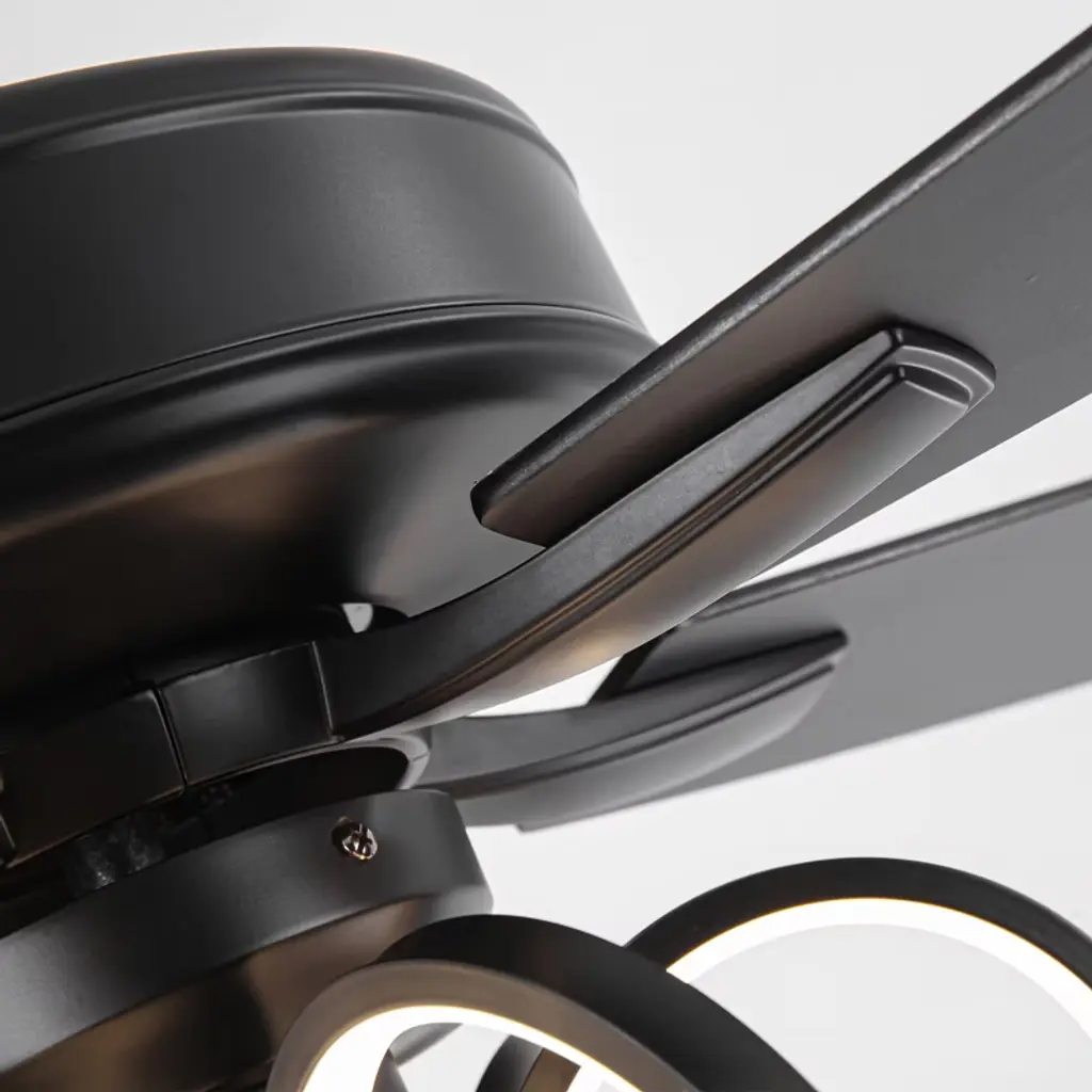 This 52-inch modern ceiling fan combines aesthetics with technology to bring a refreshing and comfortable wind feeling and elegant lighting experience to your home space. Its two-color fan blade design gives a visual sense of hierarchy, and it is easily adapted to a variety of decoration styles such as modern, Nordic, and industrial styles. The intelligent LED lighting system has a built-in high color rendering index LED light strip, which supports three color temperature adjustments of 3000K warm yellow light, 4000K natural light, and 5000K cold white light to meet the needs of different scenes. The light strip adopts a unique surround halo design, the light is soft and not dazzling, and the gradual brightening effect when it is turned on adds a sense of luxury, becoming an artistic scene on the ceiling.