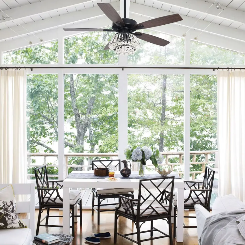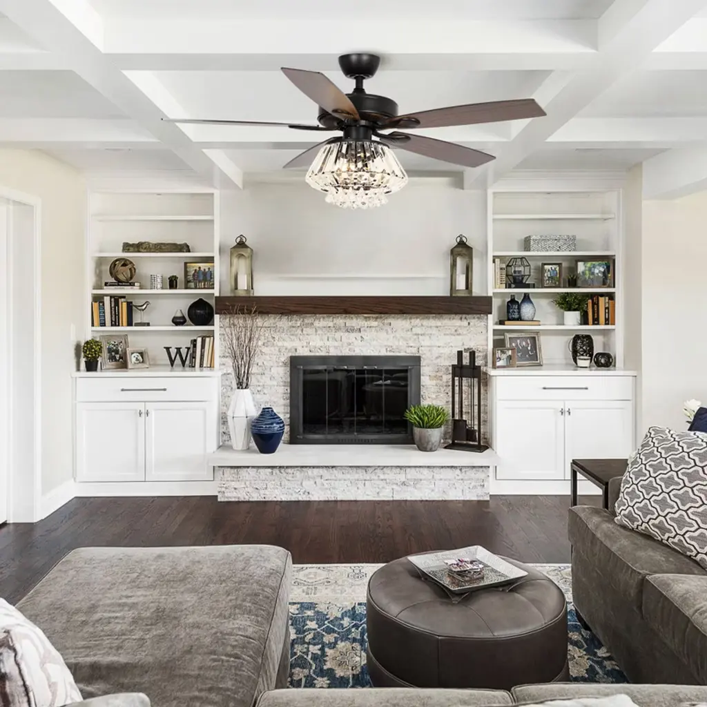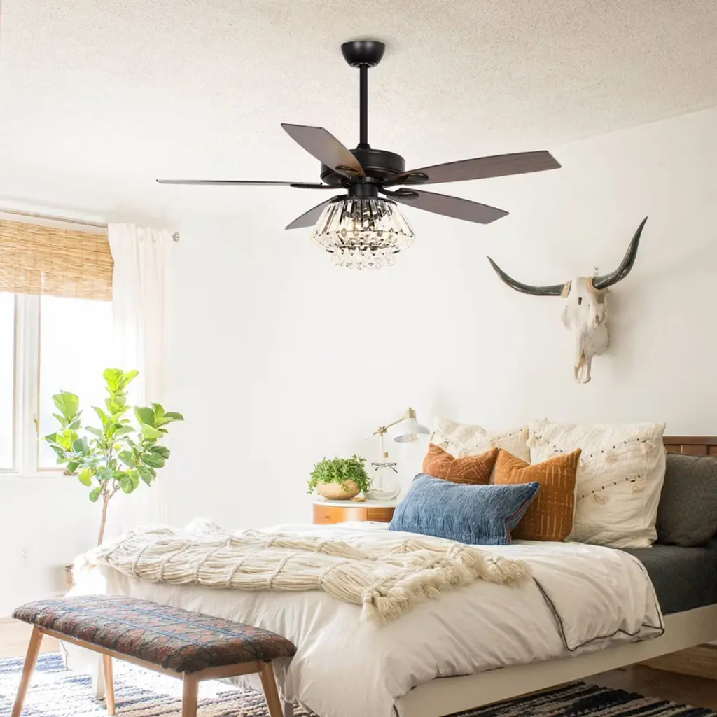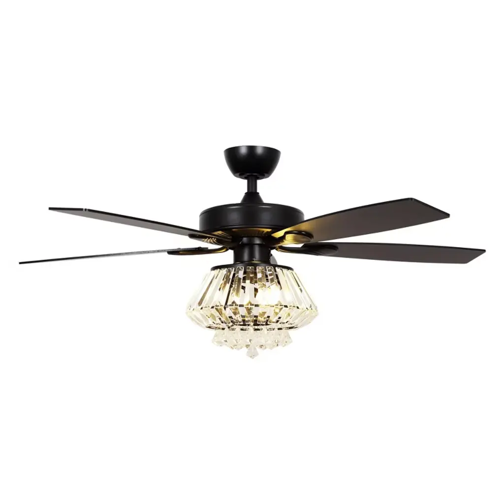 This 52-inch modern crystal ceiling fan features 5 fan blades and a crystal shade that reflects a soft brightness. Both the light and the fan support individual remote control, and the included remote control makes it easy to operate. The use of a powerful motor allows for efficient air circulation and is suitable for most rooms, such as bedrooms, kitchens, living rooms, and gazebos.