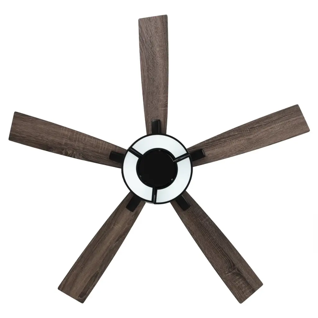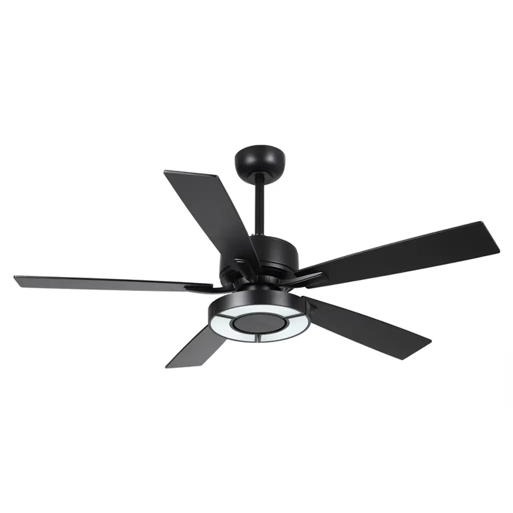This 52-inch Integrated LED Black Ceiling Fan with Light and Remote Control has an attractive design and clean lines that add a touch of elegance to your living room. The LED fan has 5 blades that are reversible in black or wood grain finish, allowing you to create a more versatile look. Free your hands through the equipped remote control, you can control the wind speed of 6 grades and adjust the color temperature of the light. Place this in your living room, bedroom, or various areas within your home.