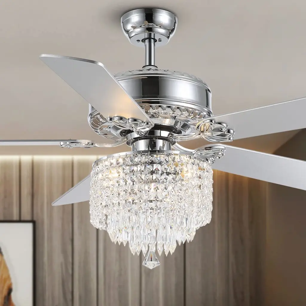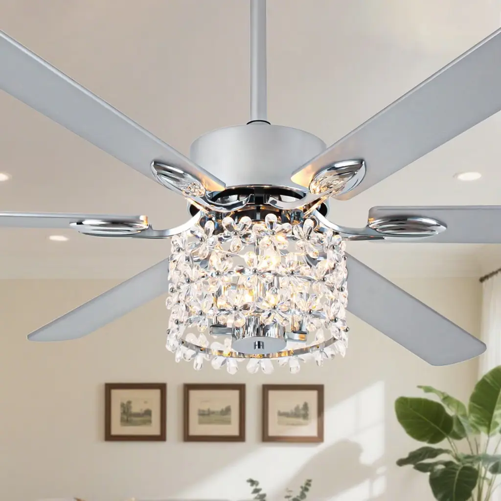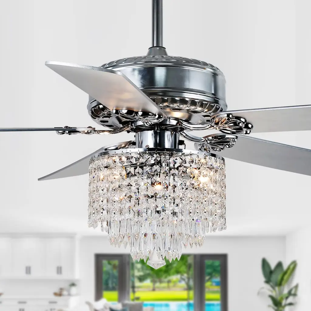 Parrot Uncle 52" Modern Chrome Crystal Ceiling Fan With Light And Remote