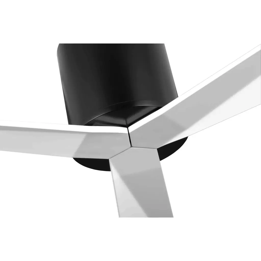 Inspired by a delicate origami flower, the 60-inch Paso LED ceiling fan features three sculpted ABS blades and a slim silhouette. Coated in a luxe Matte Black finish with Matte White blades, Paso is UL damp location listed for indoor or outdoor use and includes a full-function, hand-held remote with a wall bracket.